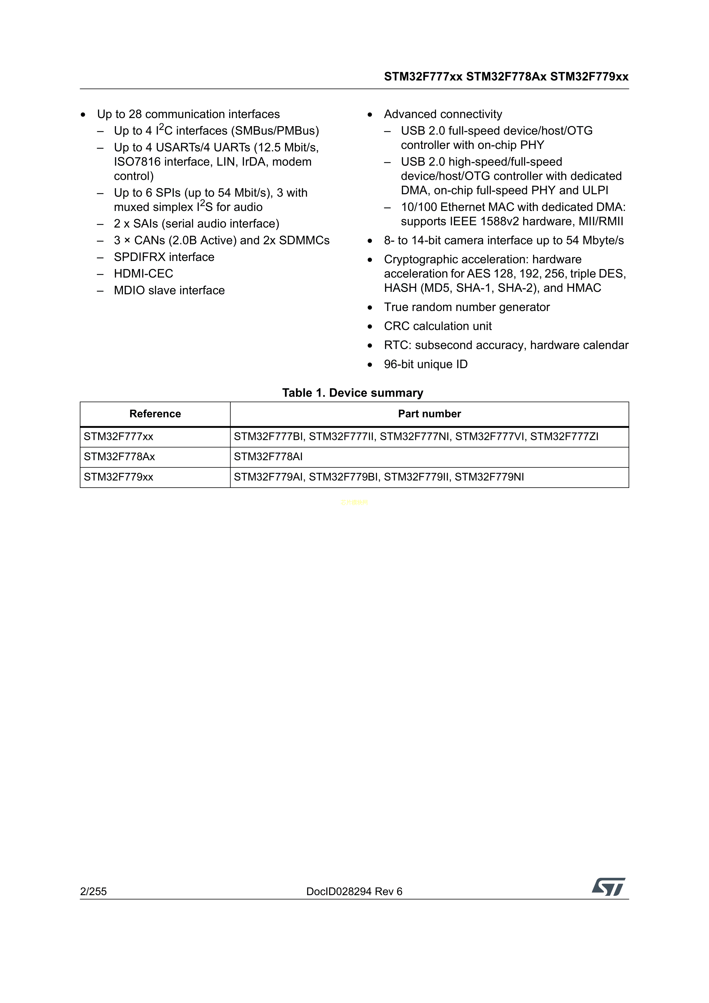 STM32F779BIT6数据手册LQFP-208(28x28)封装ST(意法半导体)PDF规格书,
