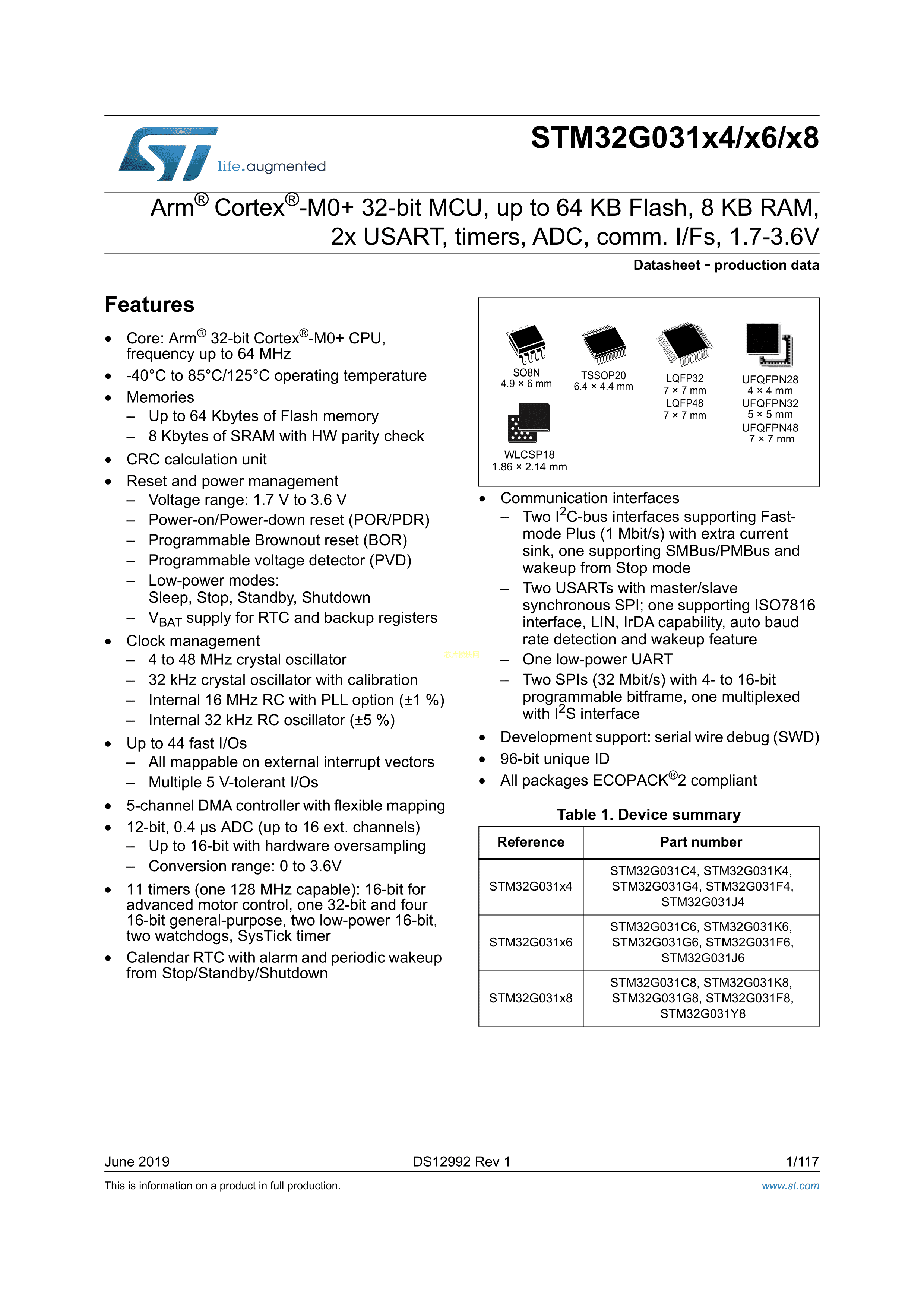 STM32G031C6T6数据手册LQFP-48封装ST(意法半导体)PDF规格书,中英文下载