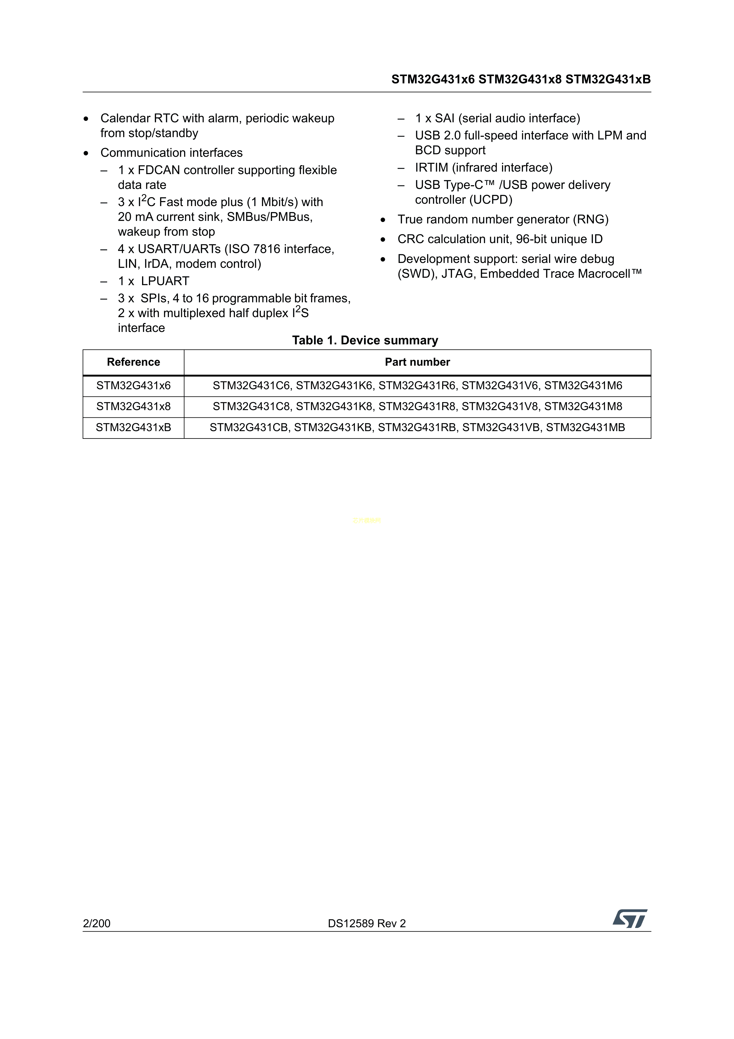 STM32G431VBT6数据手册LQFP-100封装ST(意法半导体)PDF规格书,中英文下载