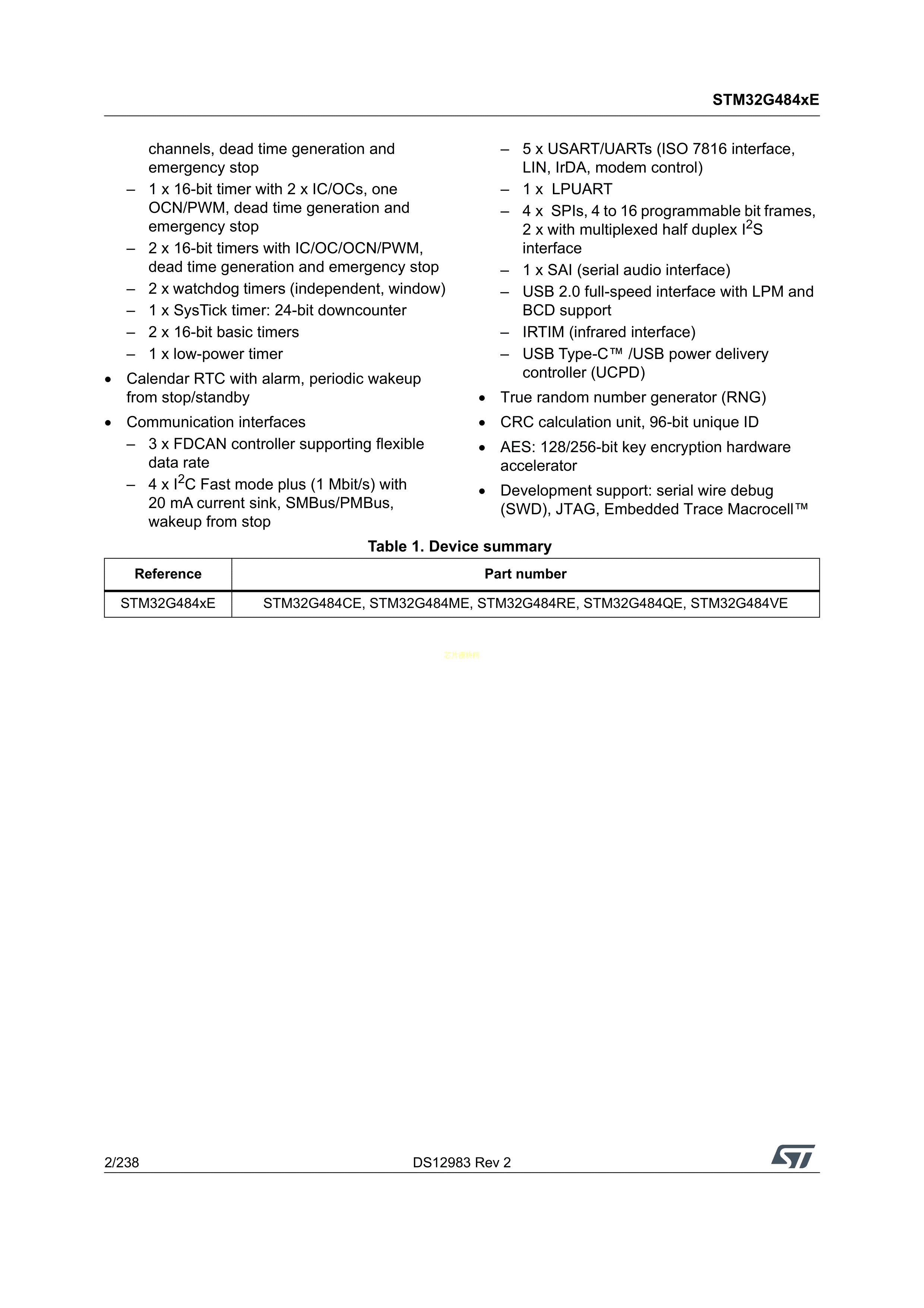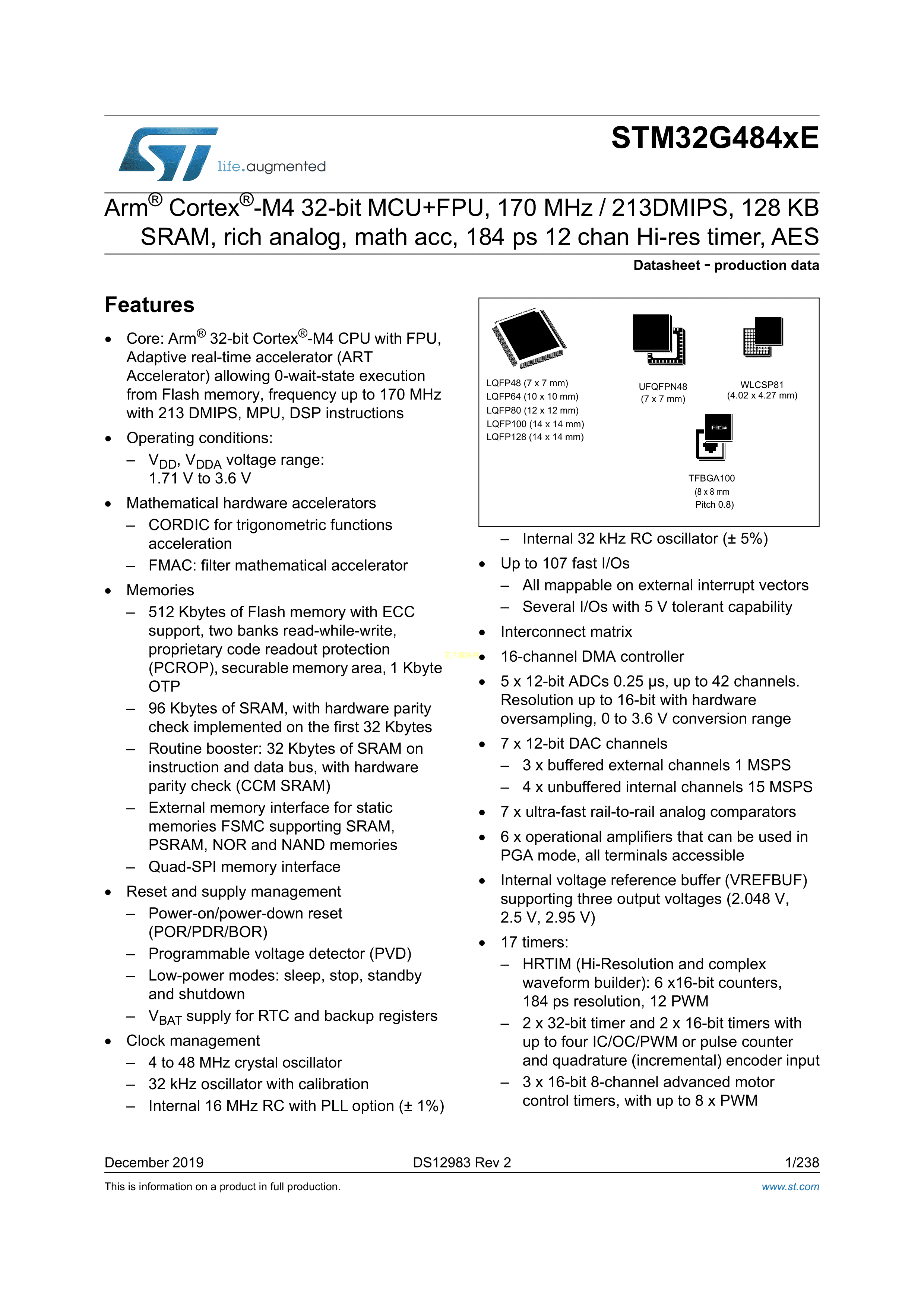 STM32G484VET6数据手册LQFP-100封装ST(意法半导体)PDF规格书,中英文下载