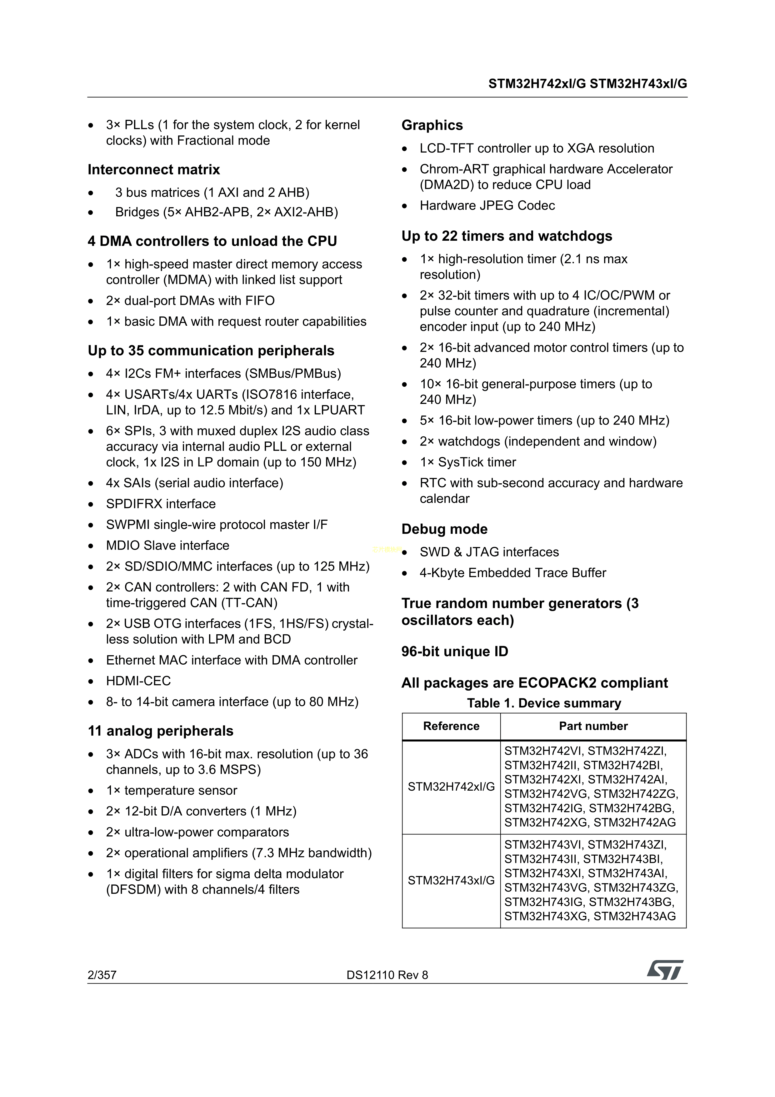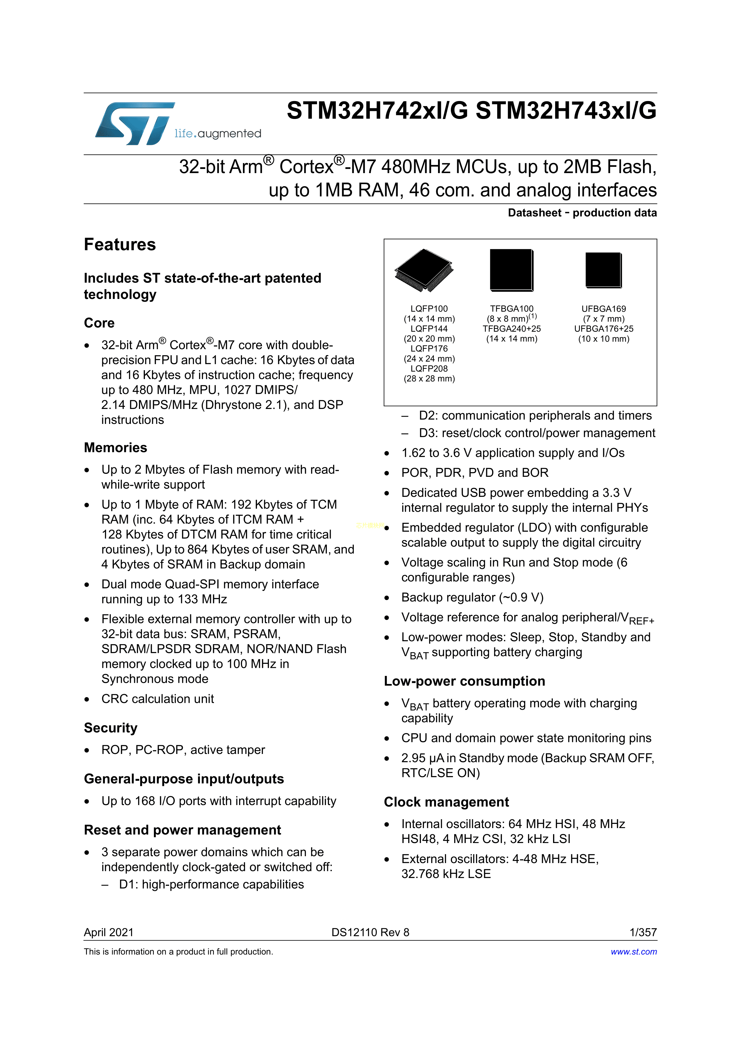 STM32H742VGH6数据手册TFBGA-100(8x8)封装ST(意法半导体)PDF规格书,中