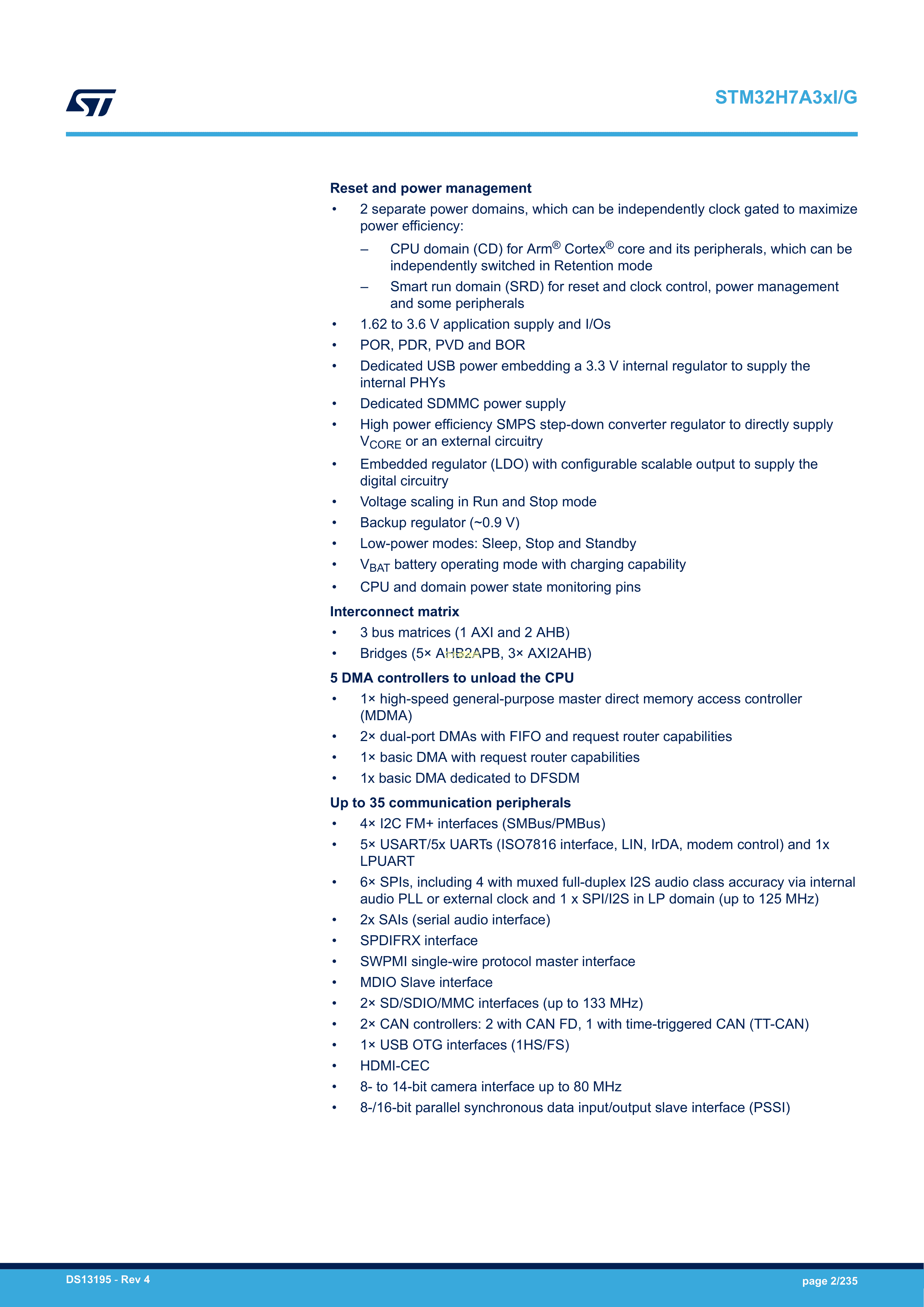 STM32H7A3RIT6数据手册LQFP-64封装ST(意法半导体)PDF规格书,中英文下载