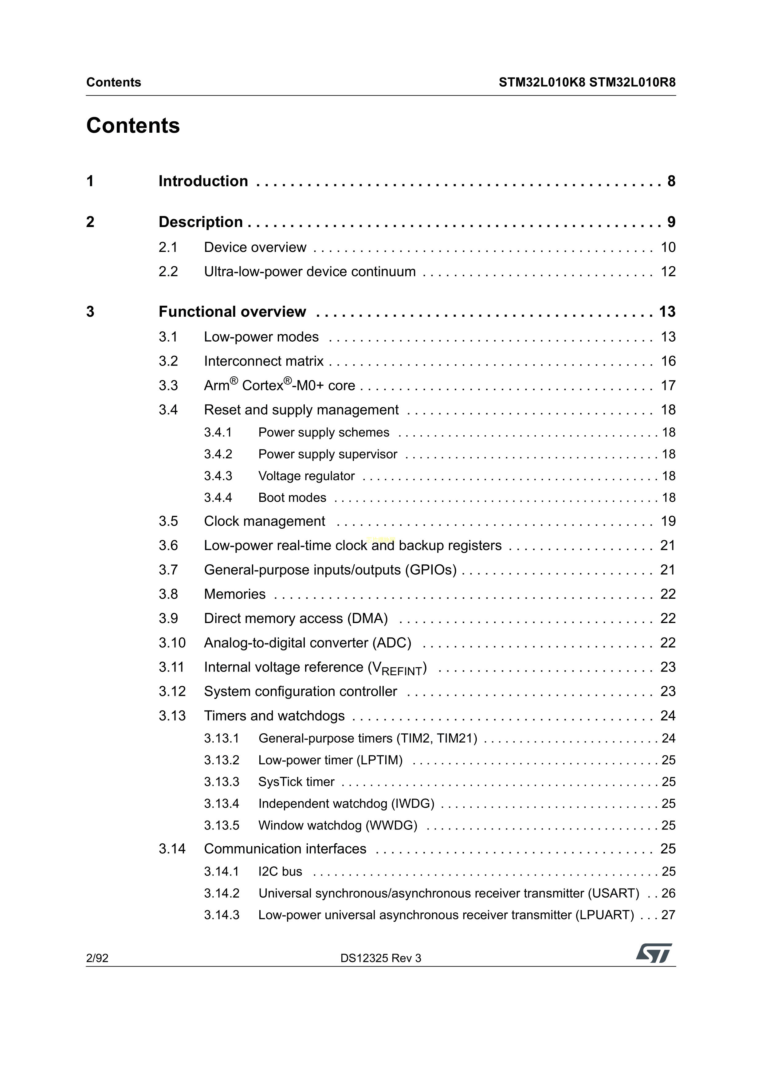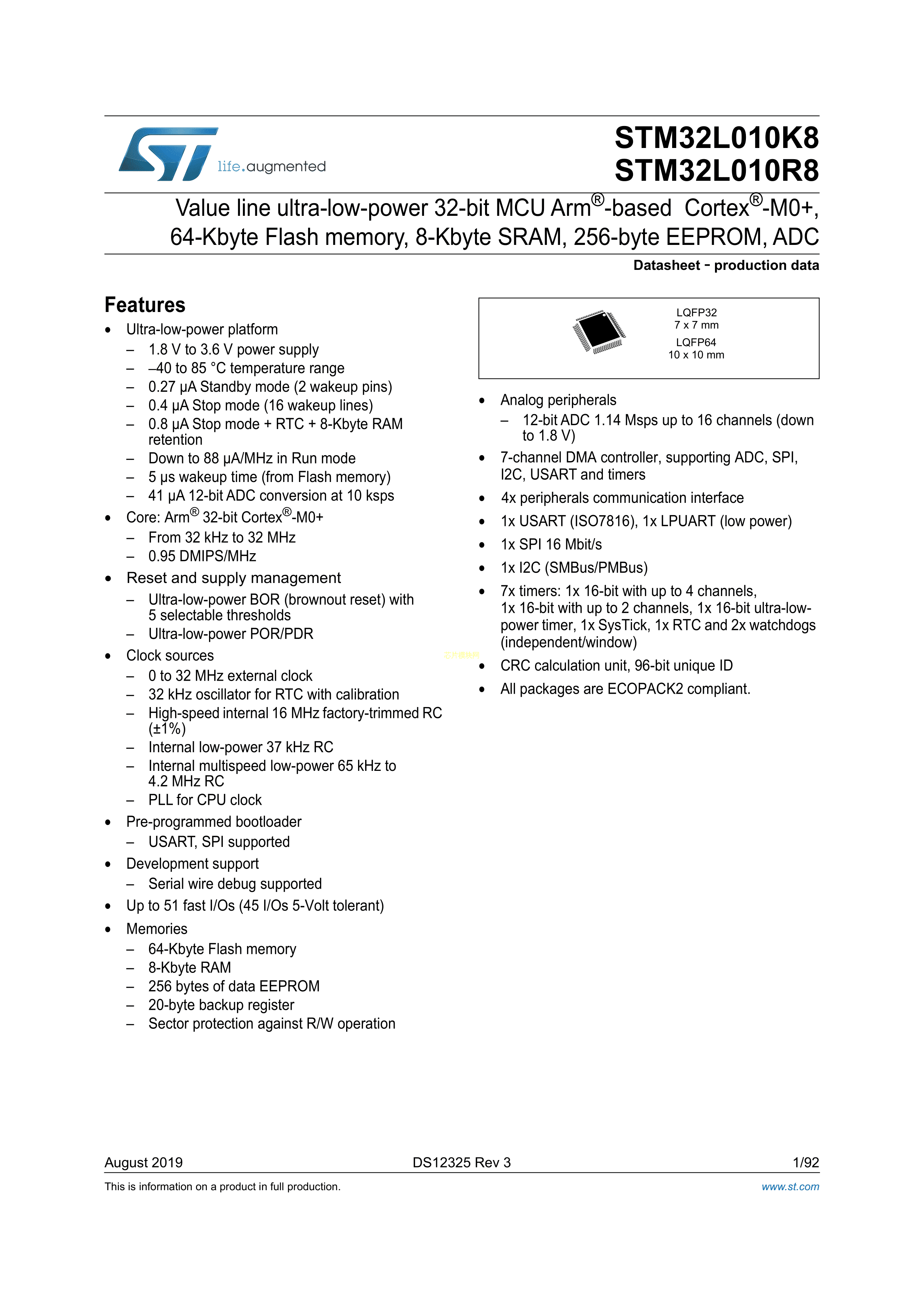 STM32L010K8T6数据手册LQFP-32封装ST(意法半导体)PDF规格书,中英文下载