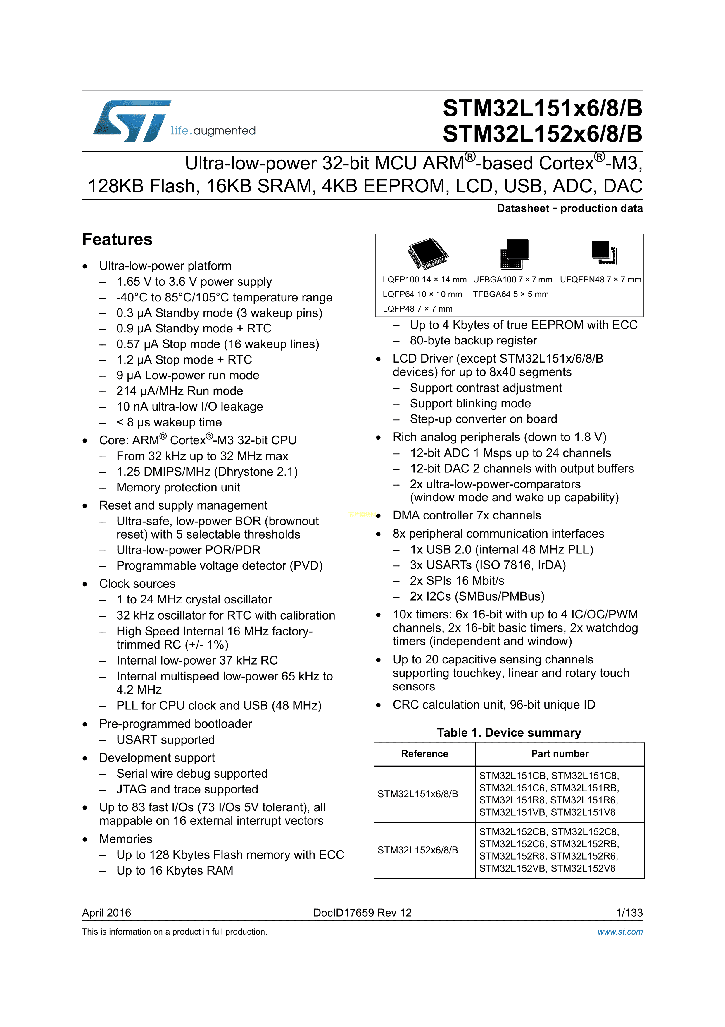 STM32L151CBU6数据手册UFQFPN-48封装ST(意法半导体)PDF规格书,中英文下载