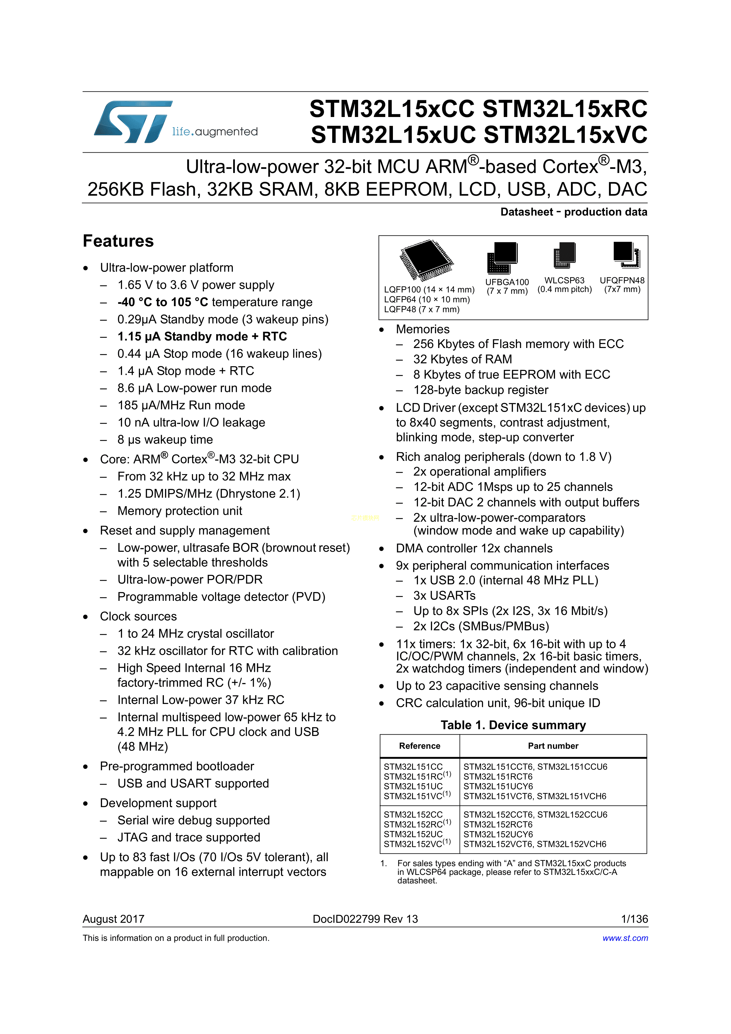 STM32L151CCT6TR数据手册LQFP-48(7x7)封装ST(意法半导体)PDF规格书,中
