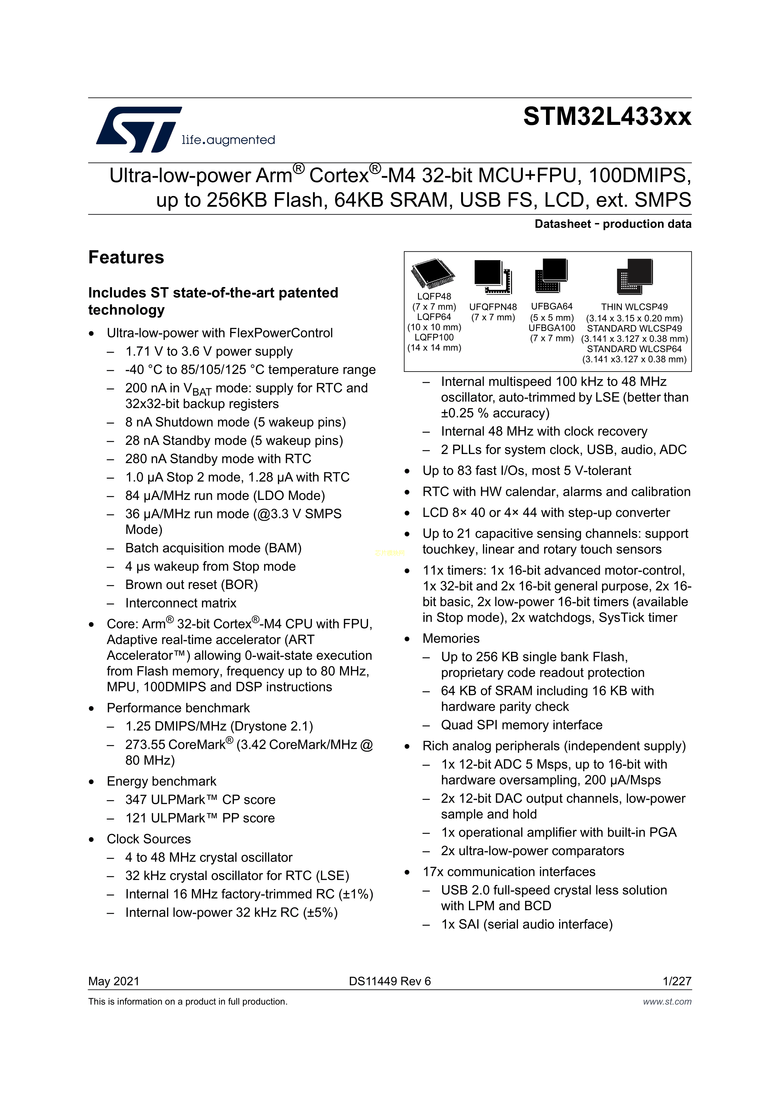 STM32L433CBY6TR数据手册WLCSP-49(3.14x3.11)封装ST(意法半导体)P