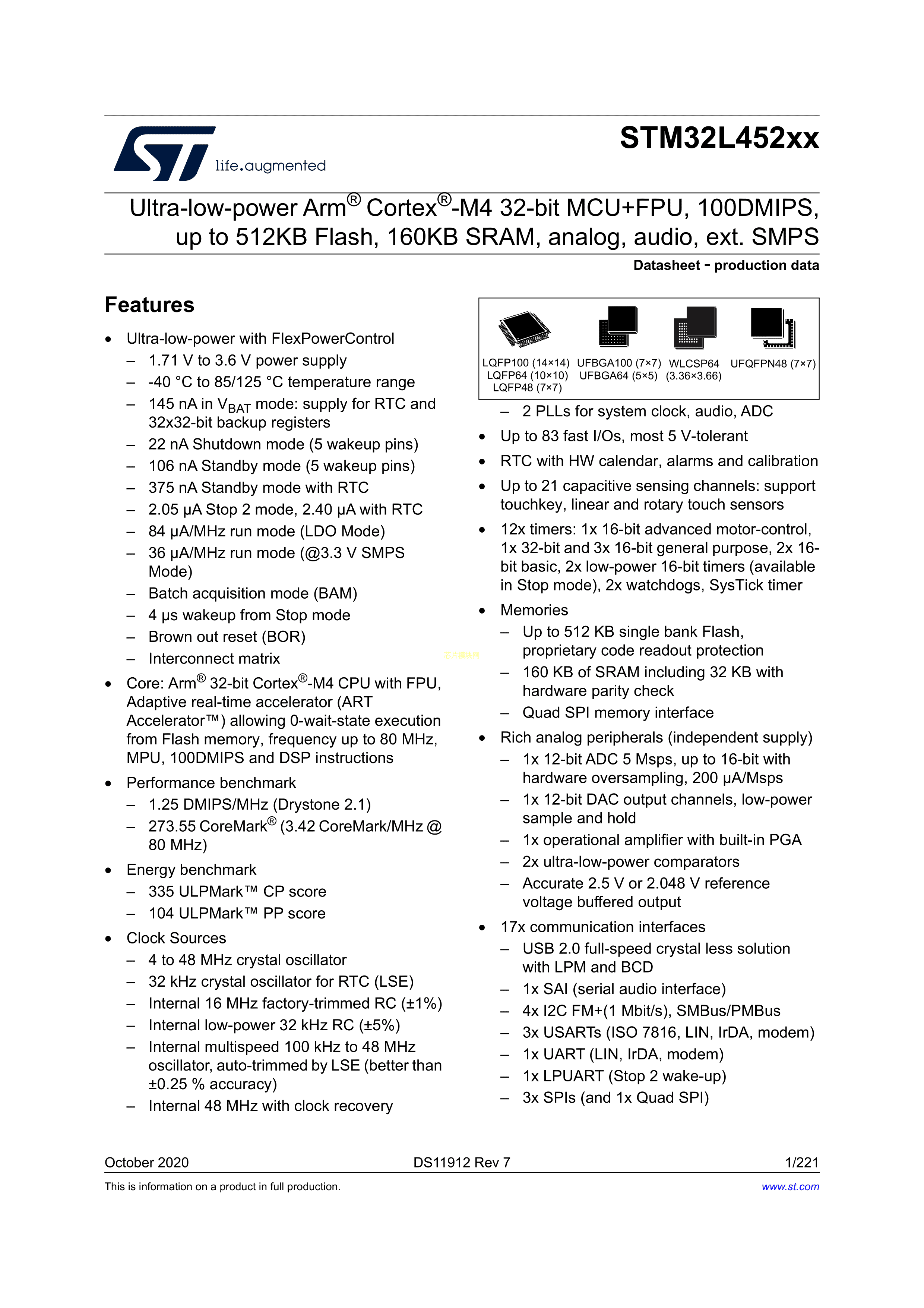 STM32L452VEI6TR数据手册UFBGA-100(7x7)封装ST(意法半导体)PDF规格书