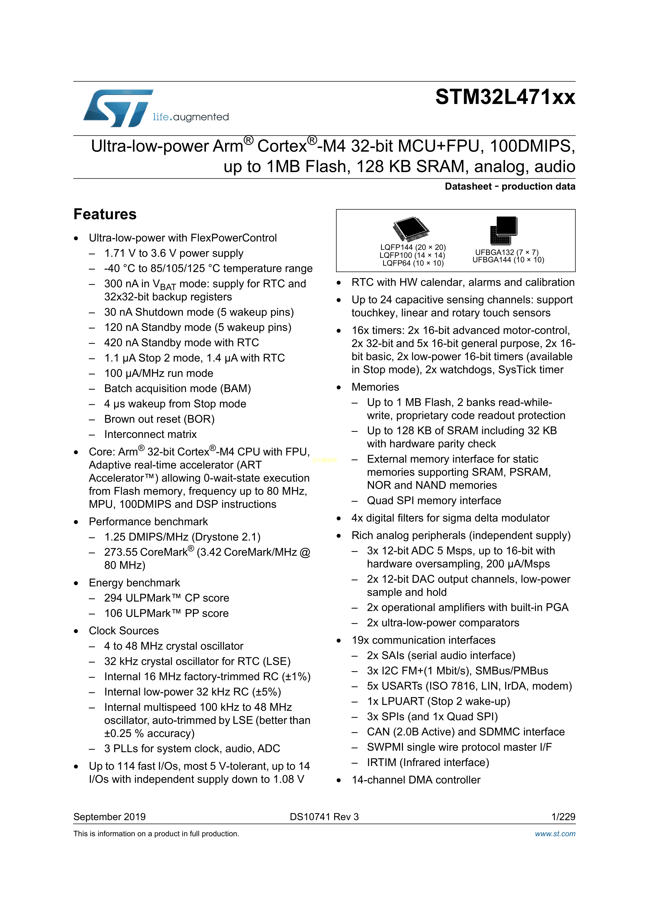 STM32L471VGT3数据手册LQFP-100(14x14)封装ST(意法半导体)PDF规格书,
