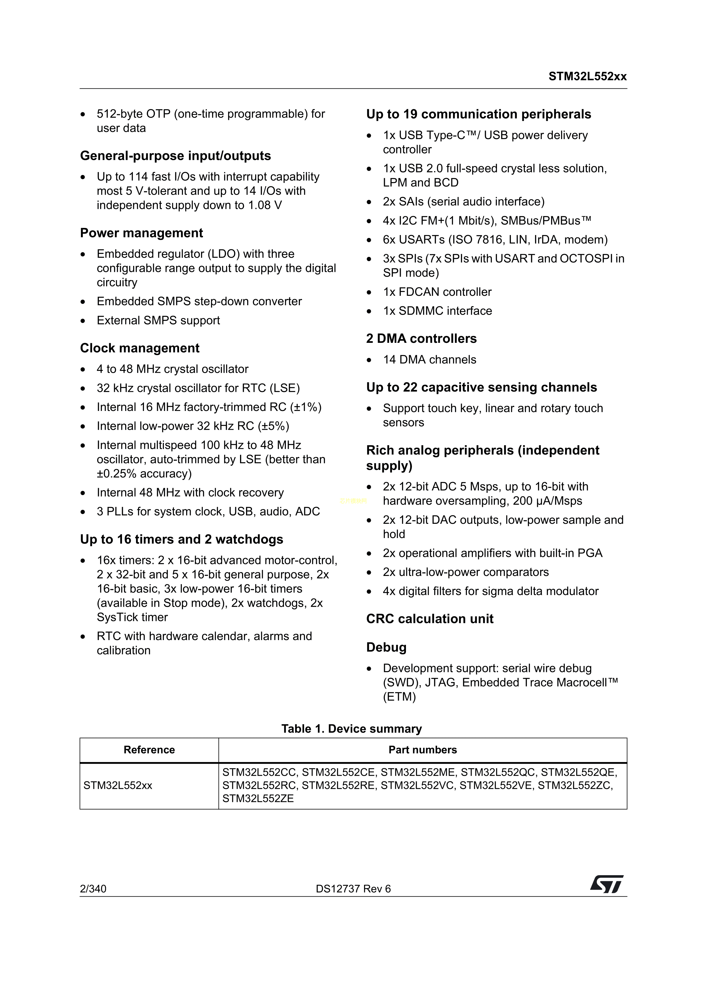 STM32L552VCT6Q数据手册LQFP-100(14x14)封装ST(意法半导体)PDF规格书