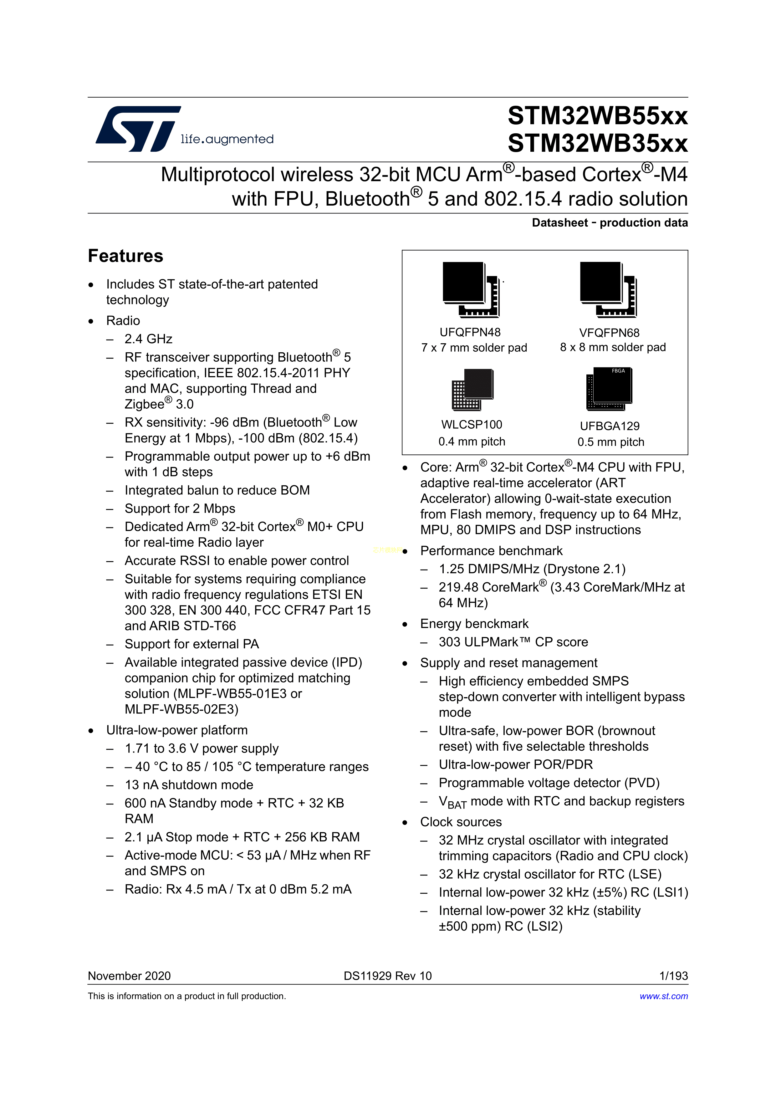 STM32WB55CEU7数据手册UFQFPN-48(7x7)封装ST(意法半导体)PDF规格书,中英文下载