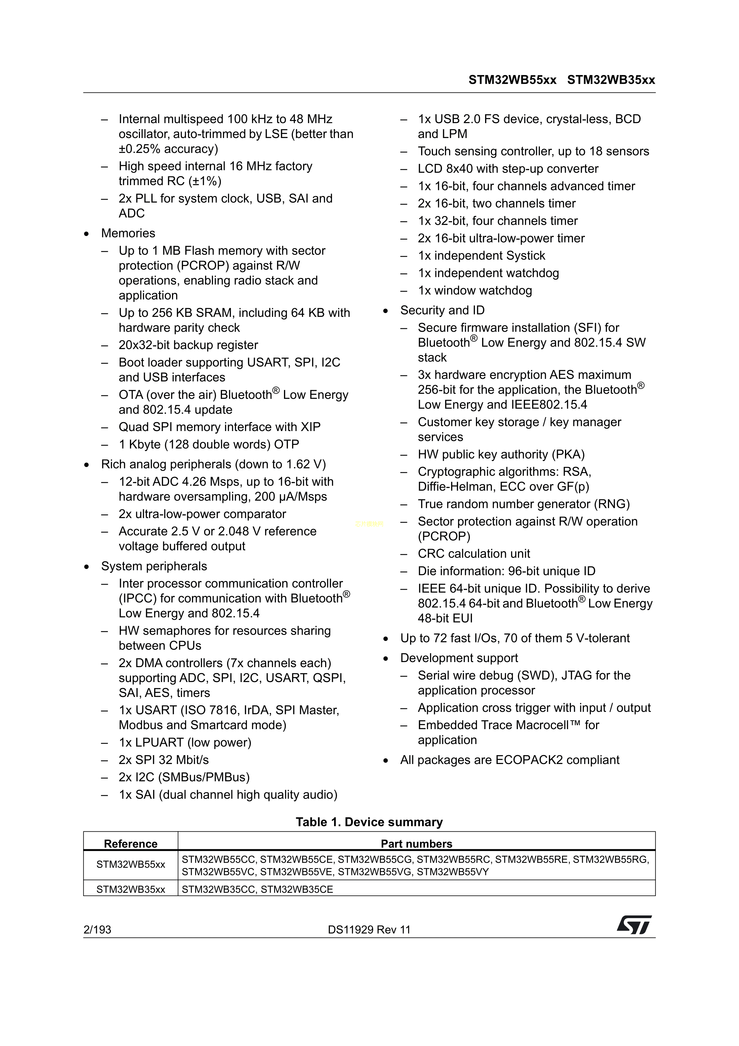 STM32WB55CGU6数据手册UFQFPN-48封装ST(意法半导体)PDF规格书,中英文下载