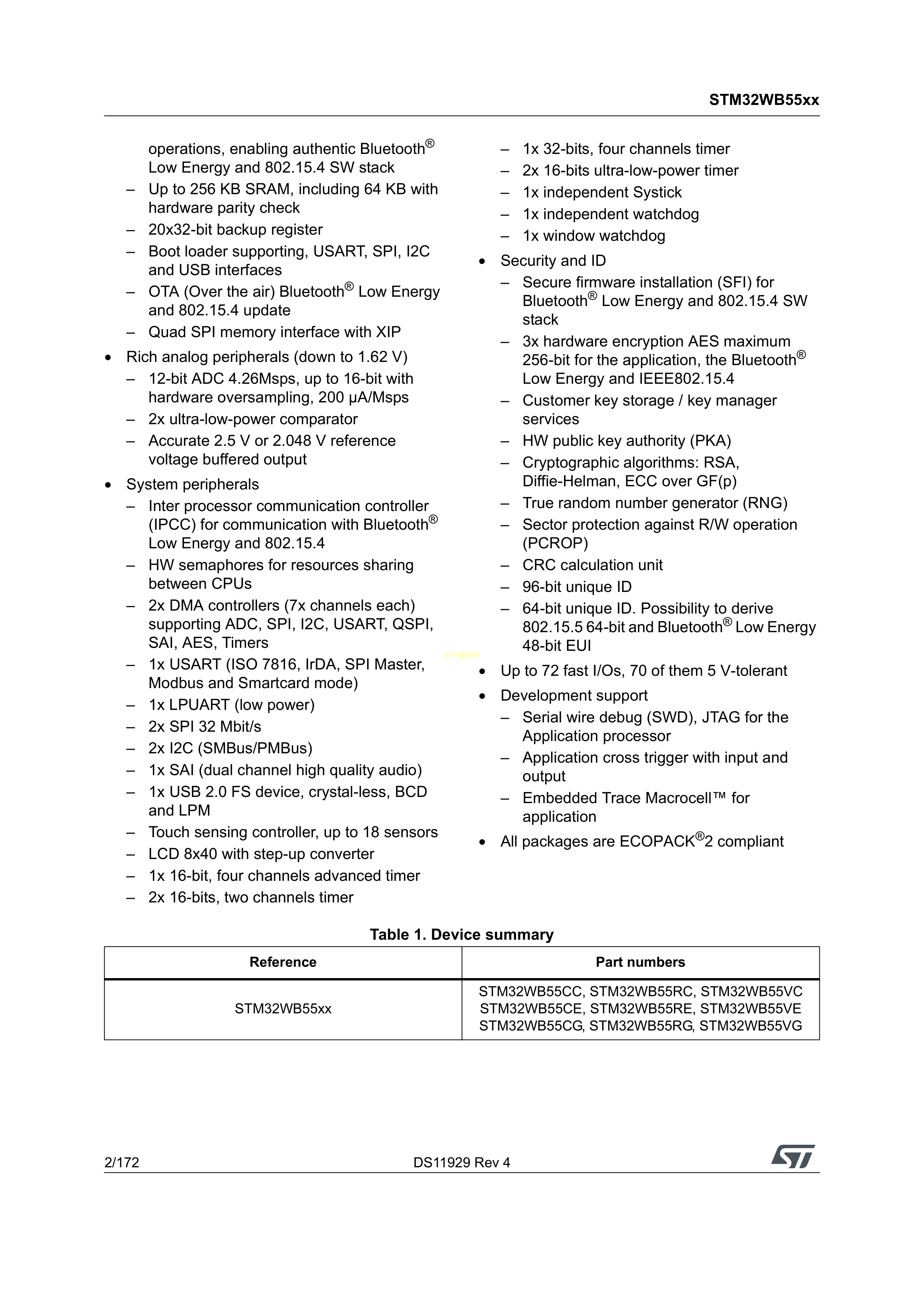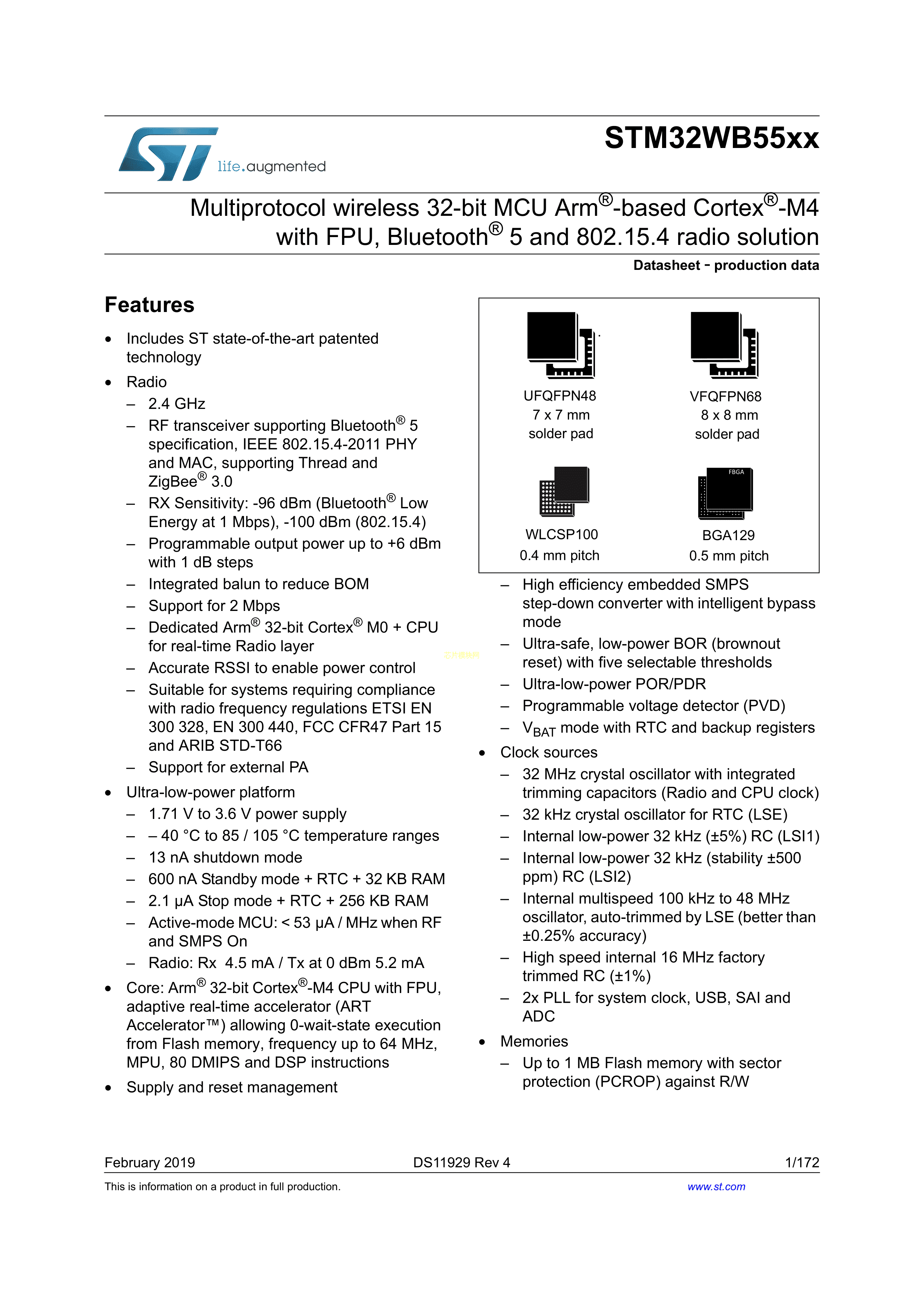 STM32WB55RGV6数据手册VFQFPN-68封装ST(意法半导体)PDF规格书,中英文下载