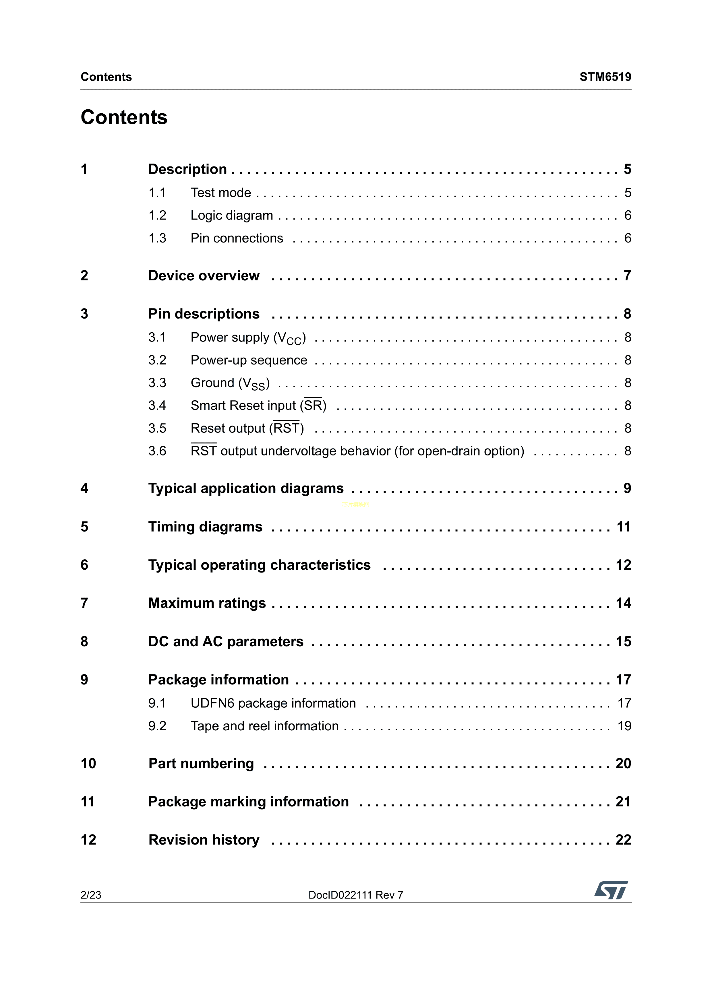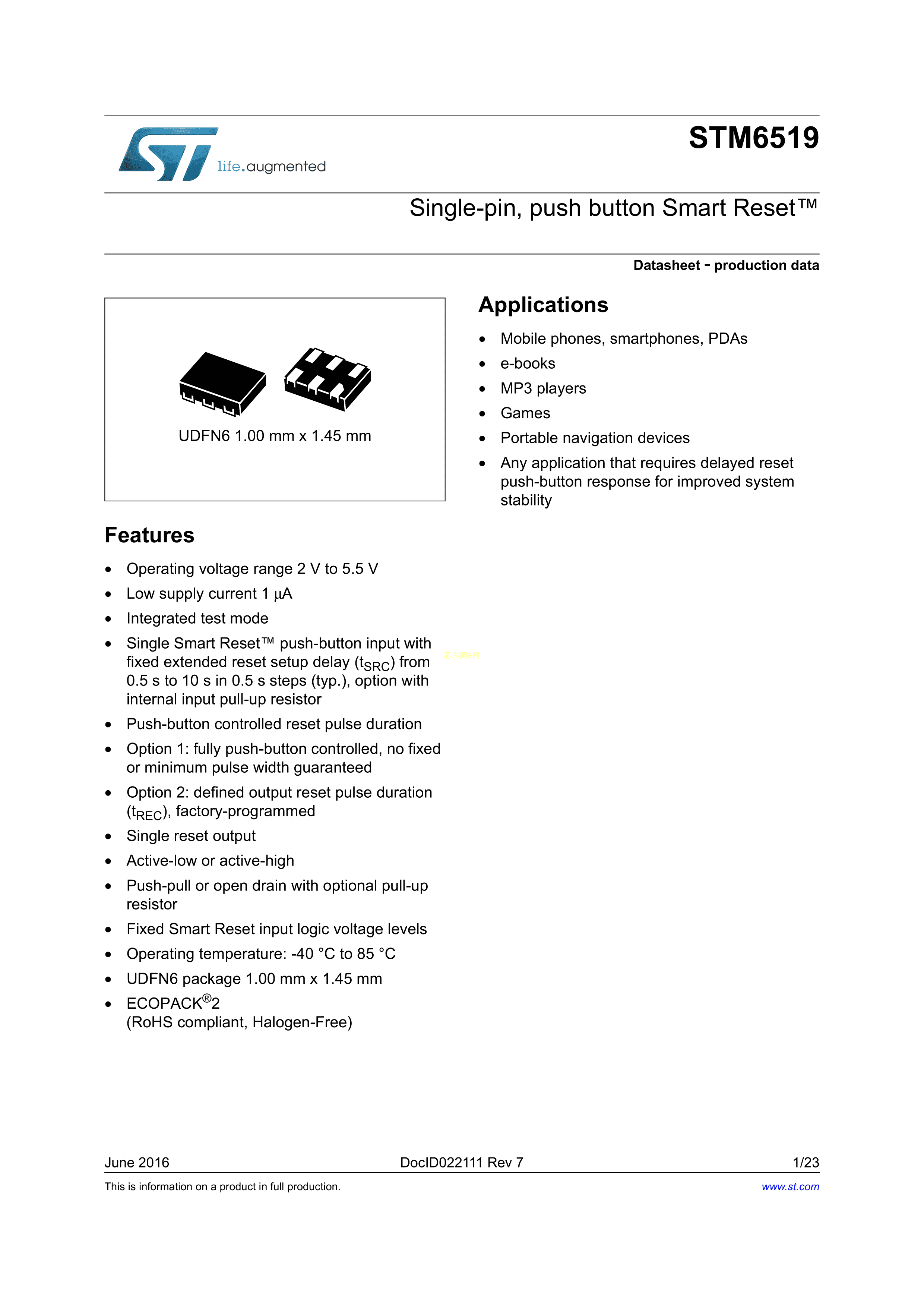 STM6519AHARUB6F数据手册UDFN-6(1.45x1)封装ST(意法半导体)PDF规格书