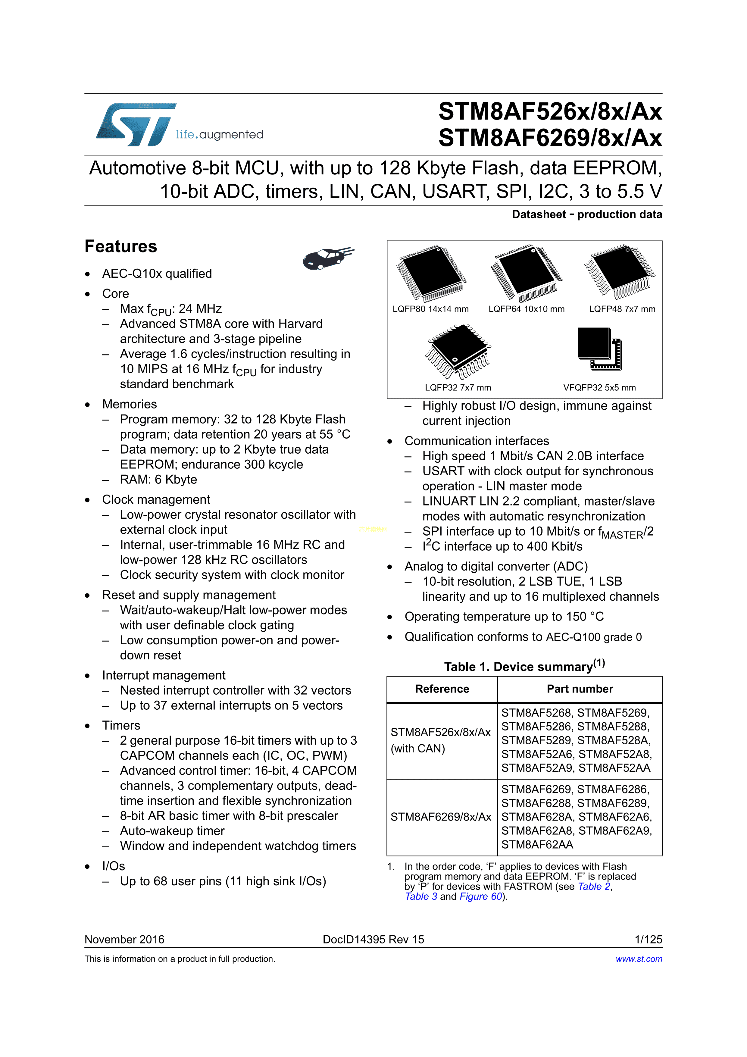 STM8AF52A9TDY数据手册LQFP-64封装ST(意法半导体)PDF规格书,中英文下载