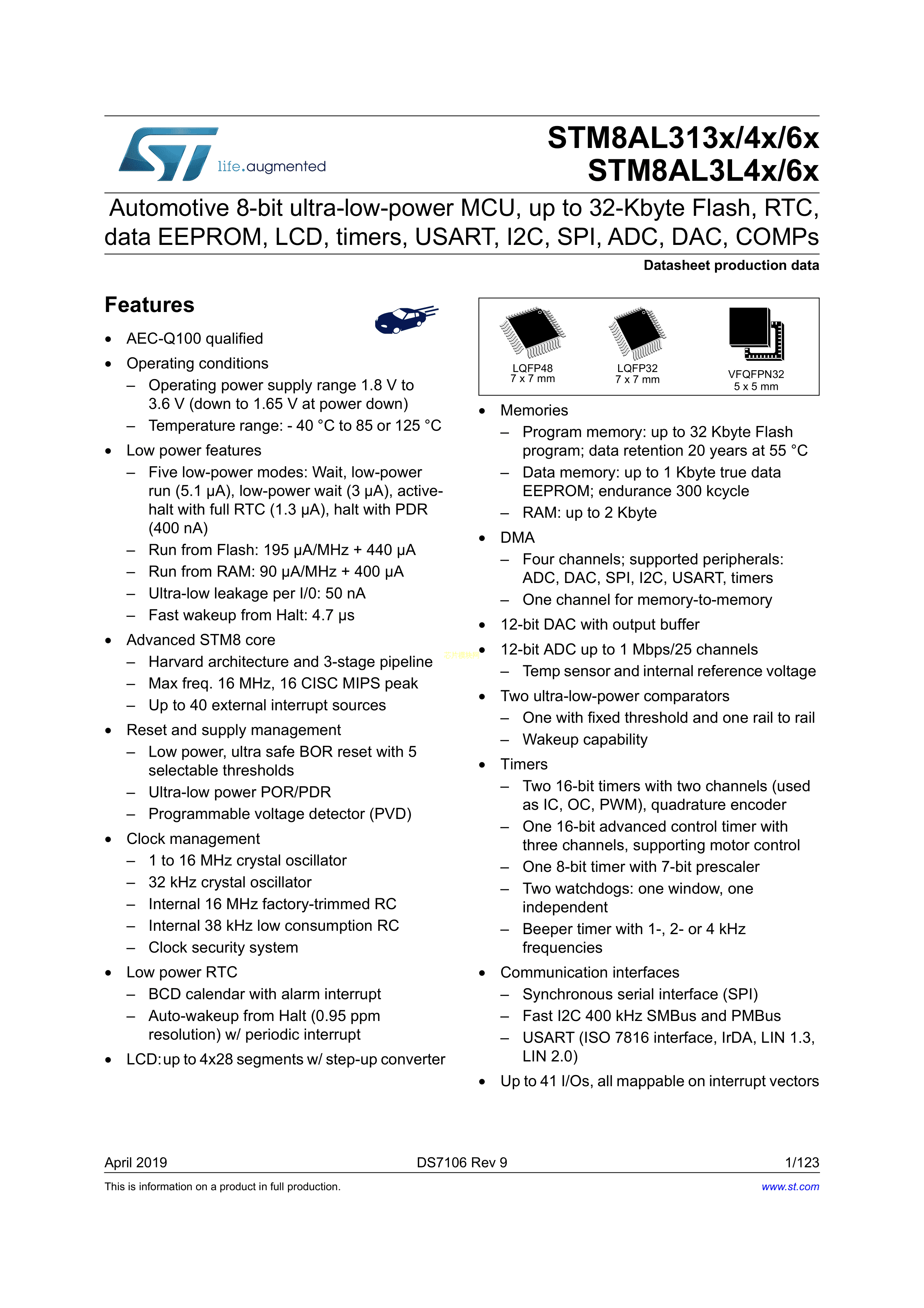 STM8AL3L48TAY数据手册LQFP-48(7x7)封装ST(意法半导体)PDF规格书,中英文