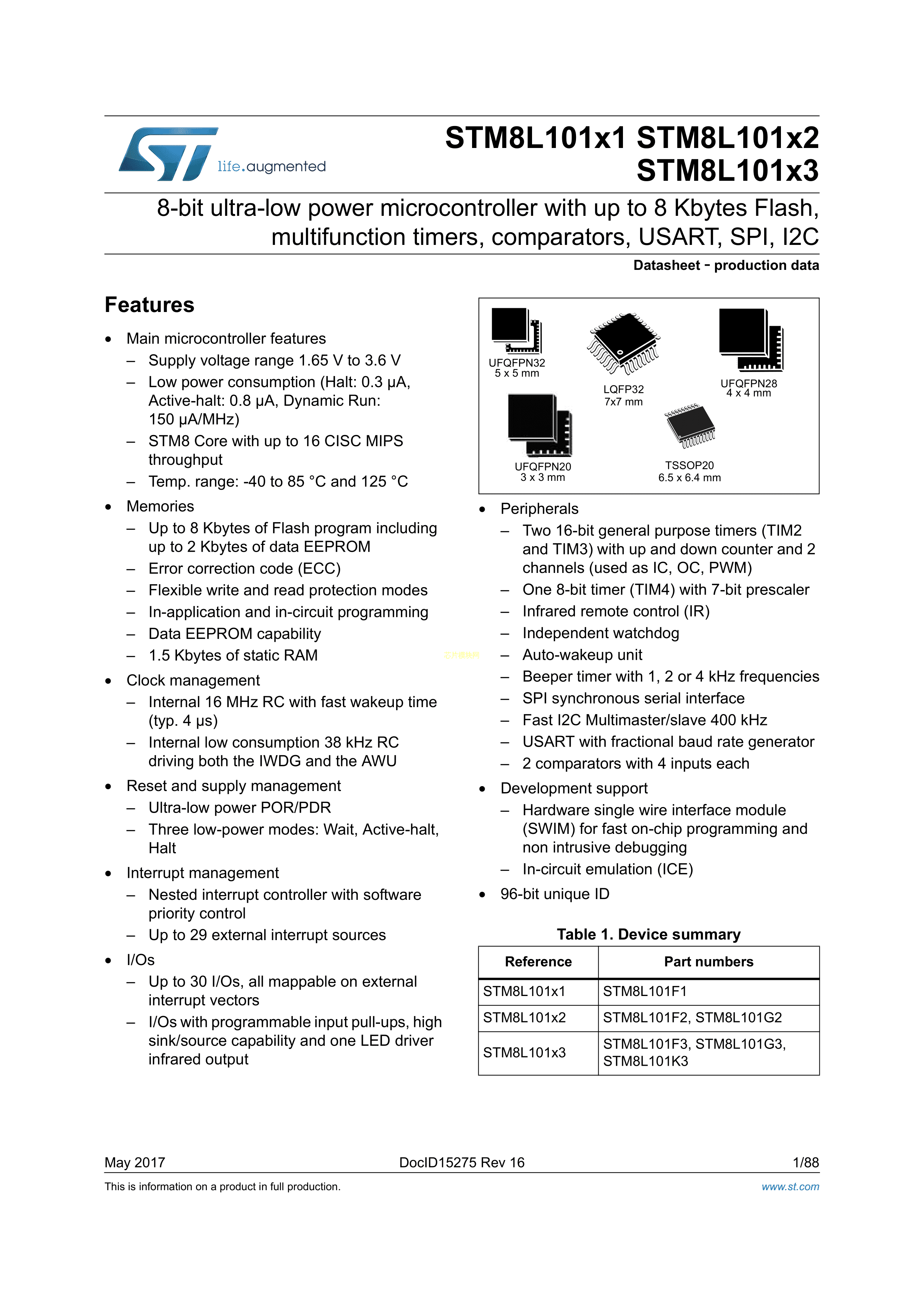 STM8L101F2P3数据手册TSSOP-20封装ST(意法半导体)PDF规格书,中英文下载