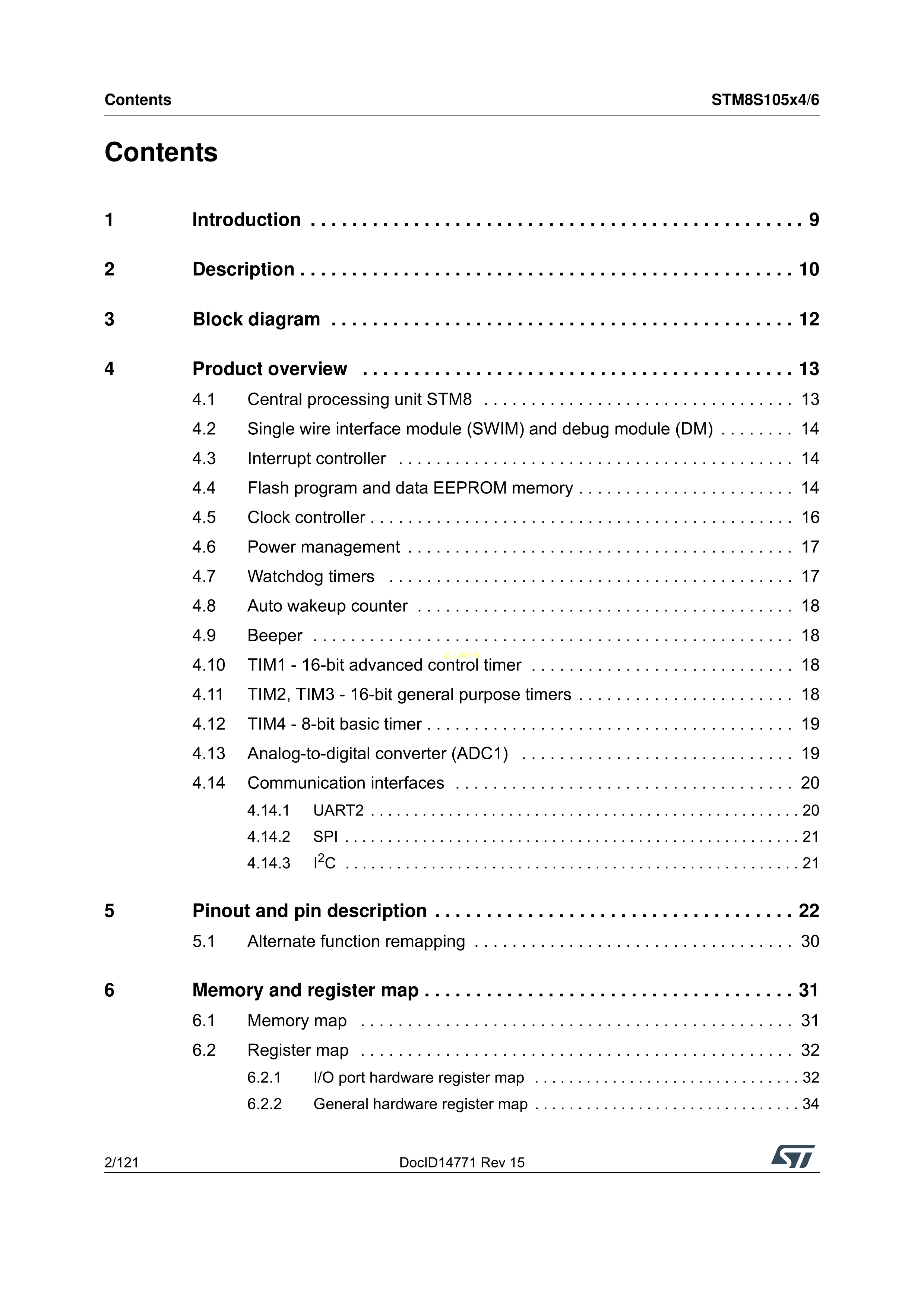 STM8S105S6T3C数据手册LQFP-44(10x10)封装ST(意法半导体)PDF规格书,中