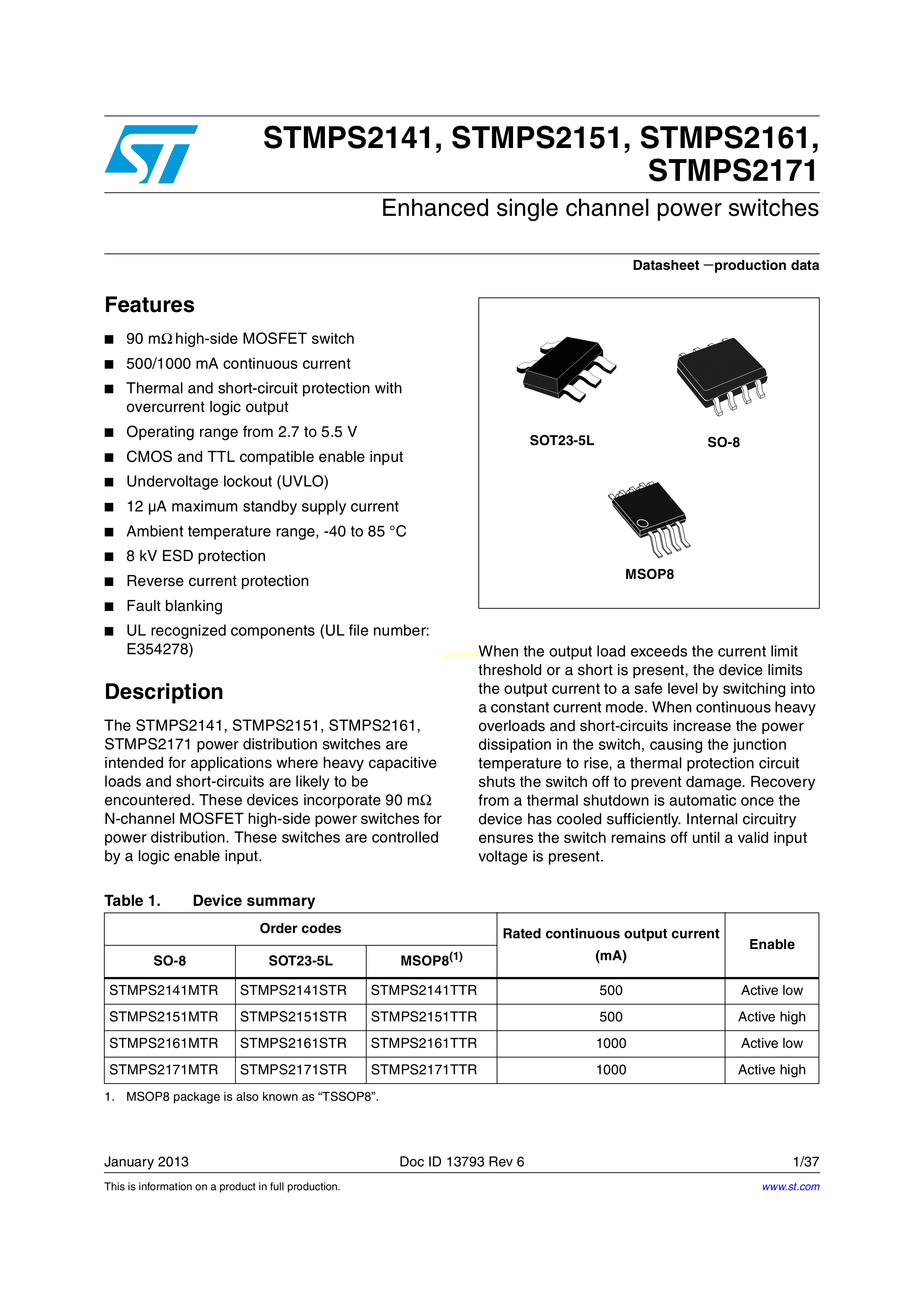 STMPS2141MTR数据手册SO-8封装ST(意法半导体)PDF规格书,中英文下载