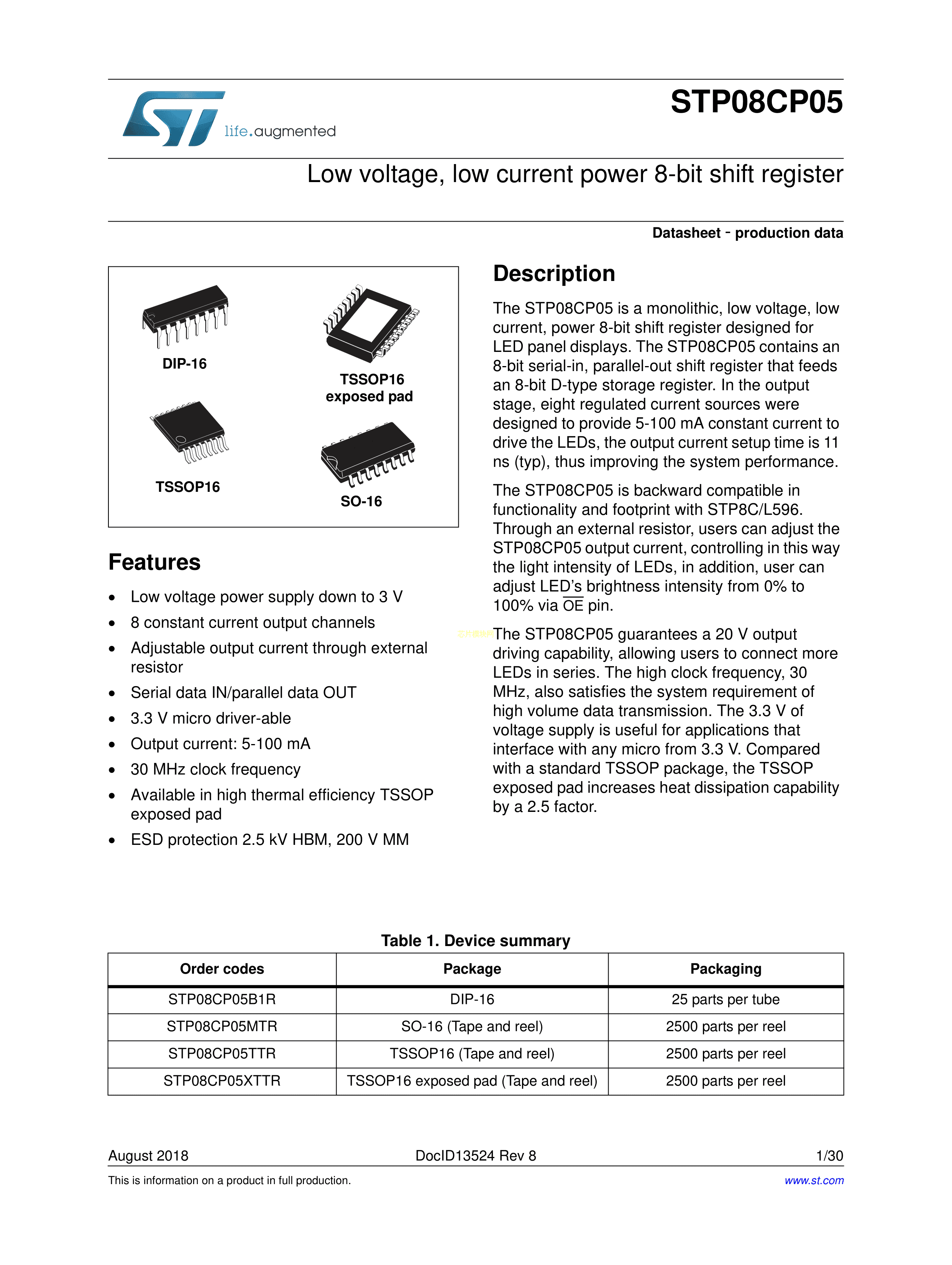 STP08CP05MTR数据手册SO-16封装ST(意法半导体)PDF规格书,中英文下载