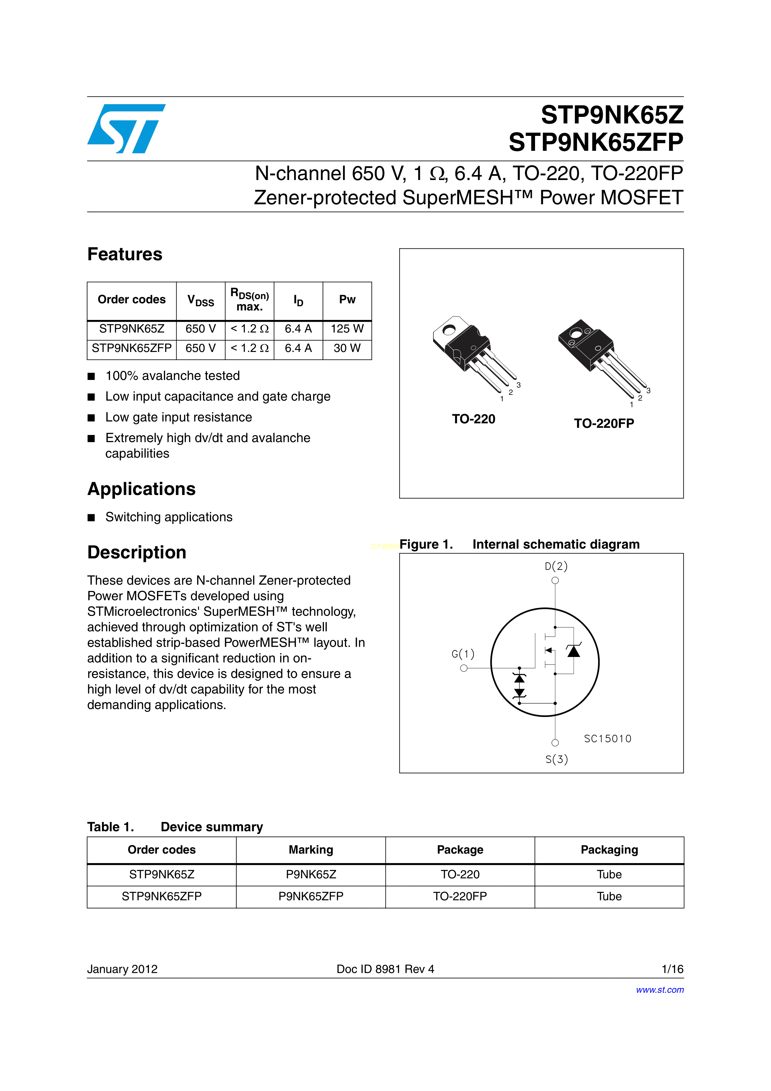 STP9NK65Z数据手册TO-220-3封装ST(意法半导体)PDF规格书,中英文下载