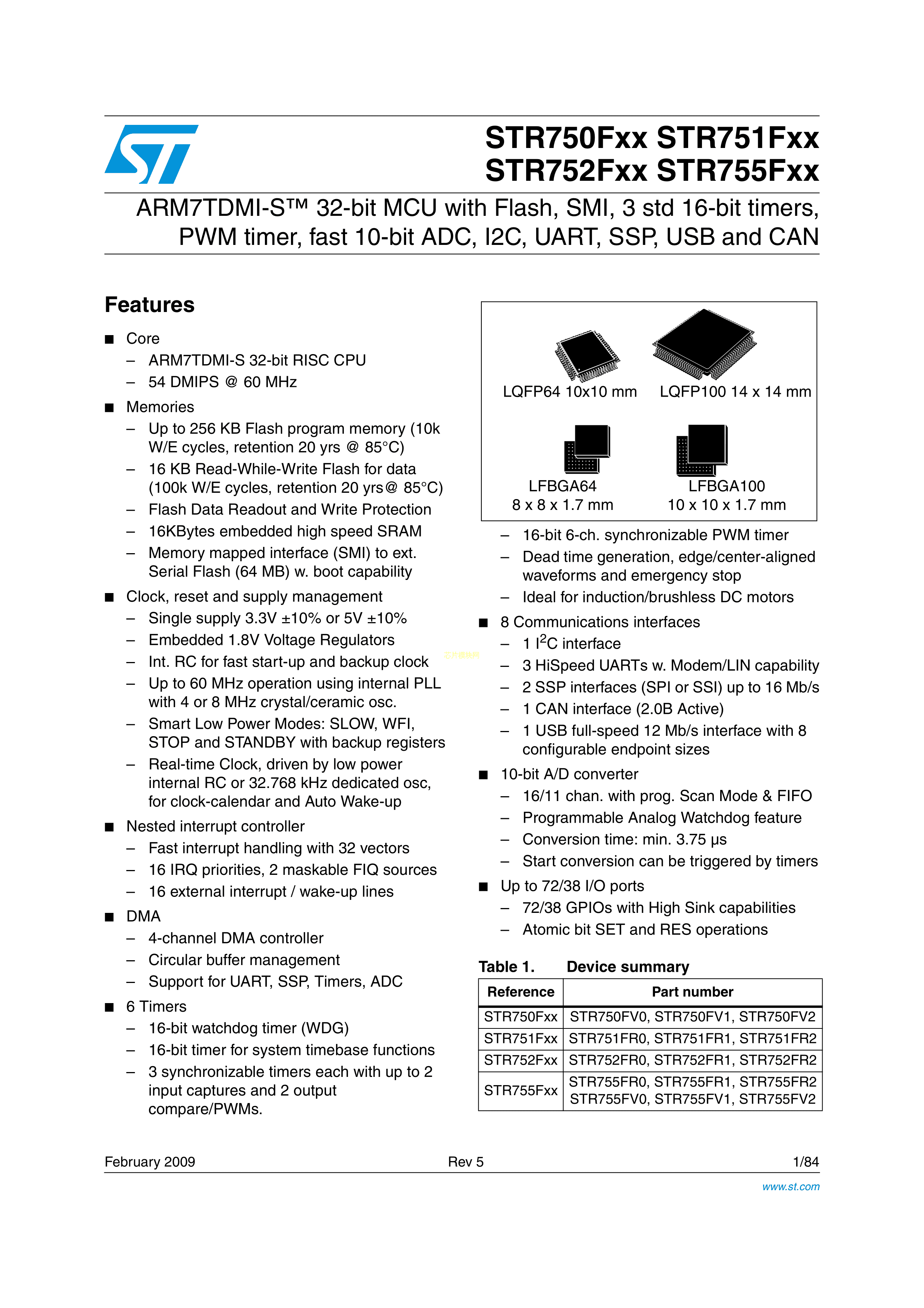 STR755FV2T6数据手册LQFP-100封装ST(意法半导体)PDF规格书,中英文下载