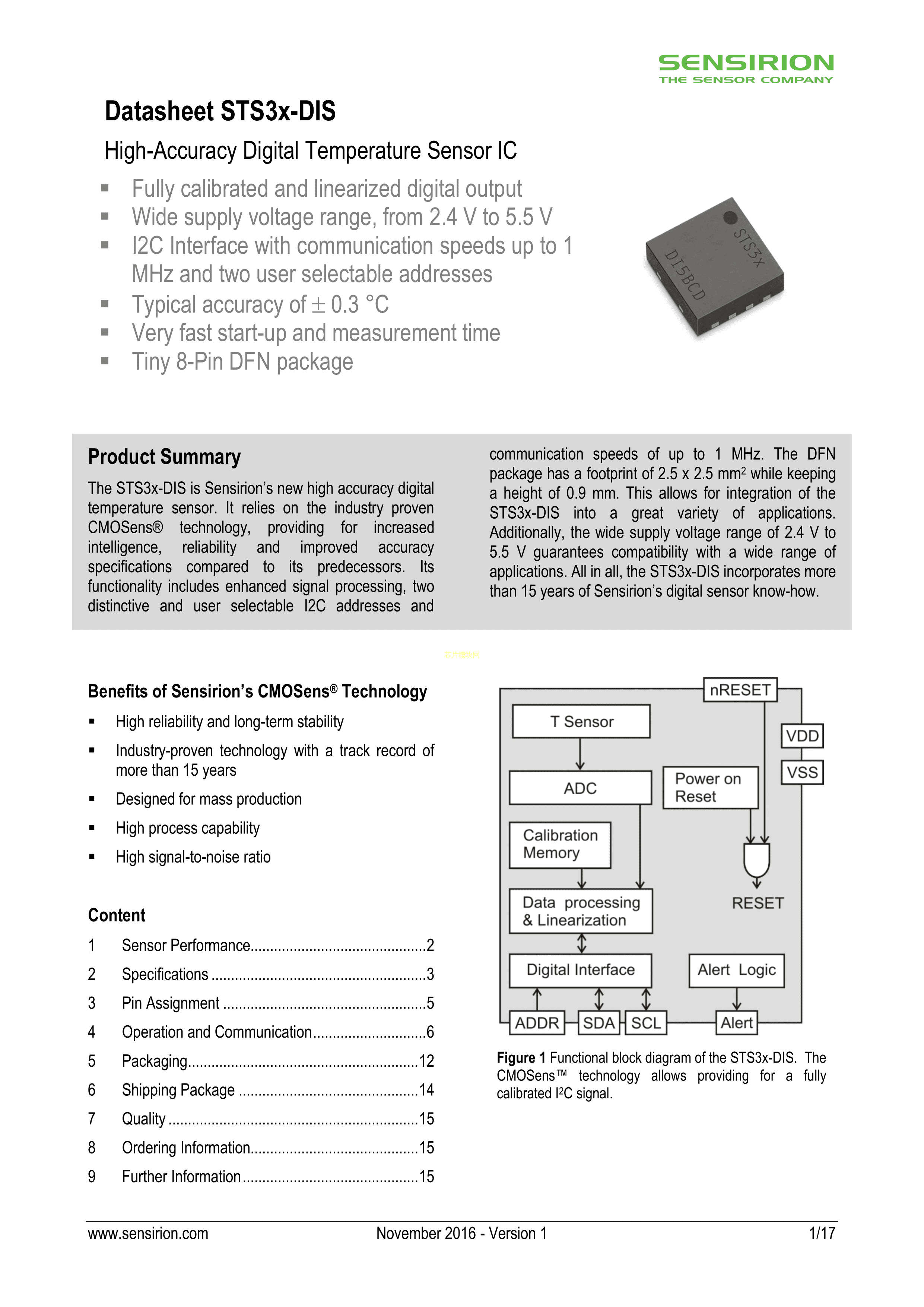 STS-30-DIS数据手册DFN-8封装Sensirion(瑞士盛思锐)PDF规格书,中英文下载