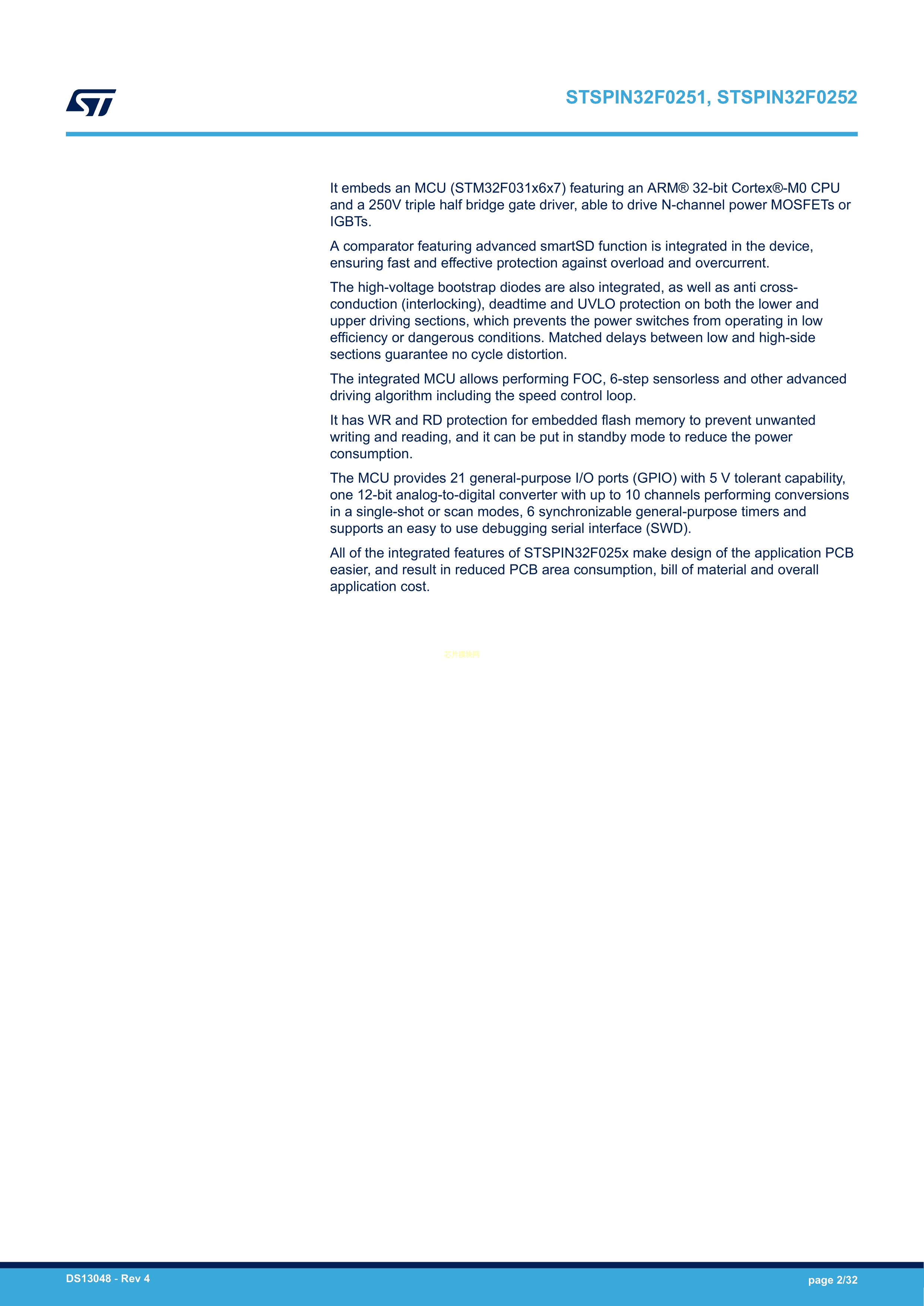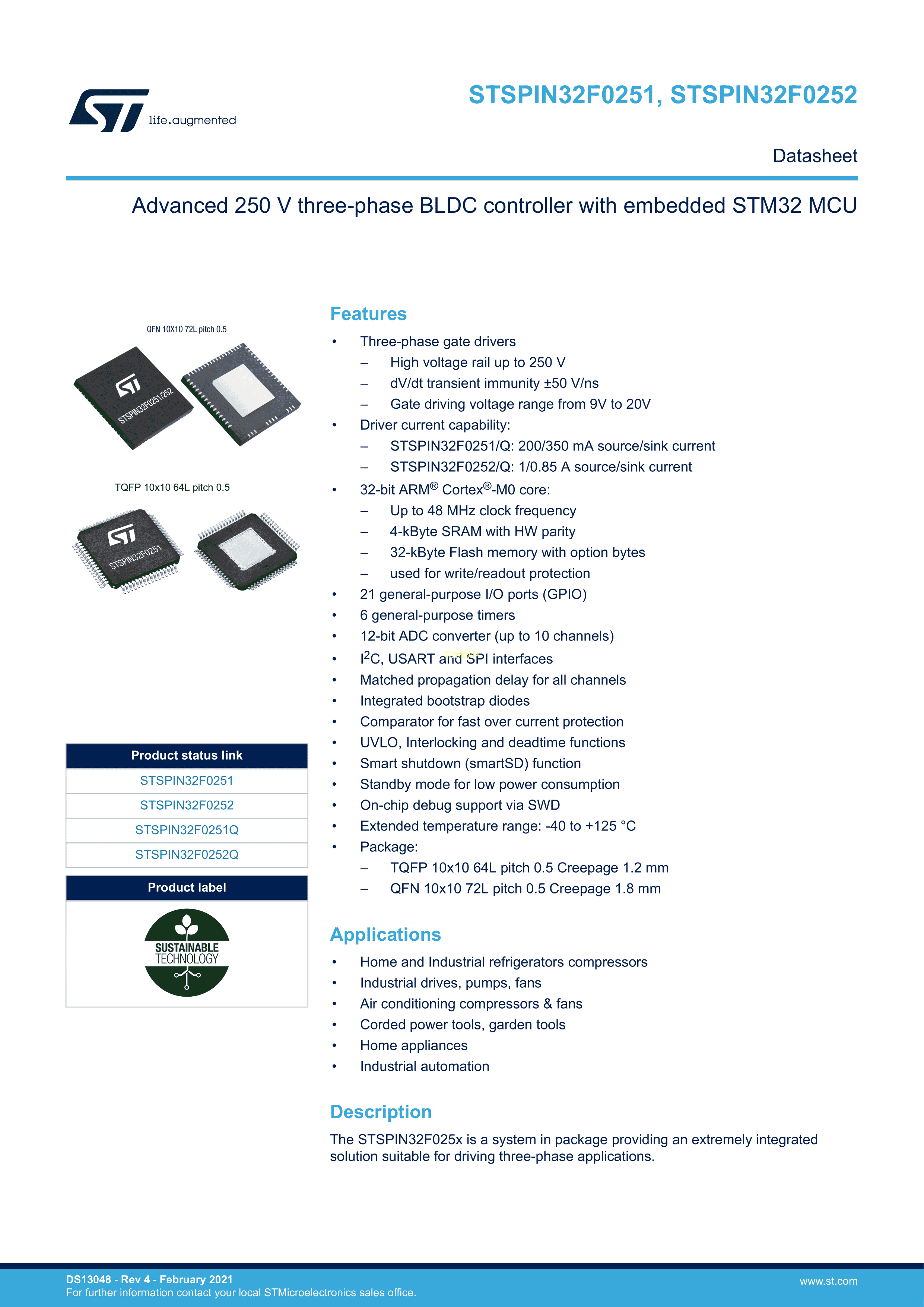 STSPIN32F0252TR数据手册TQFP-64(10x10)封装ST(意法半导体)PDF规格书