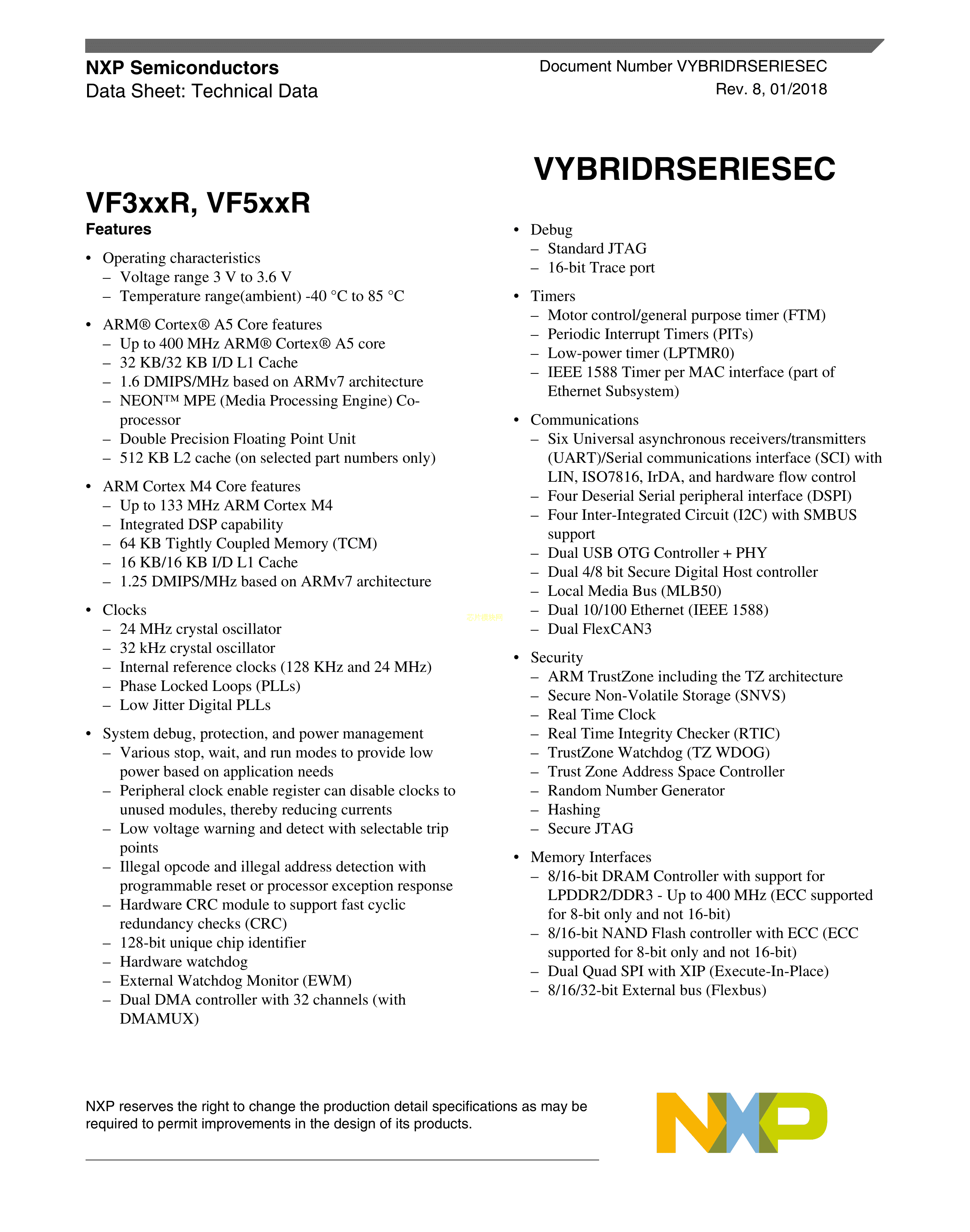 SVF321R3K1CKU2数据手册LQFP-176_EP(24x24)封装NXP(恩智浦)PDF规