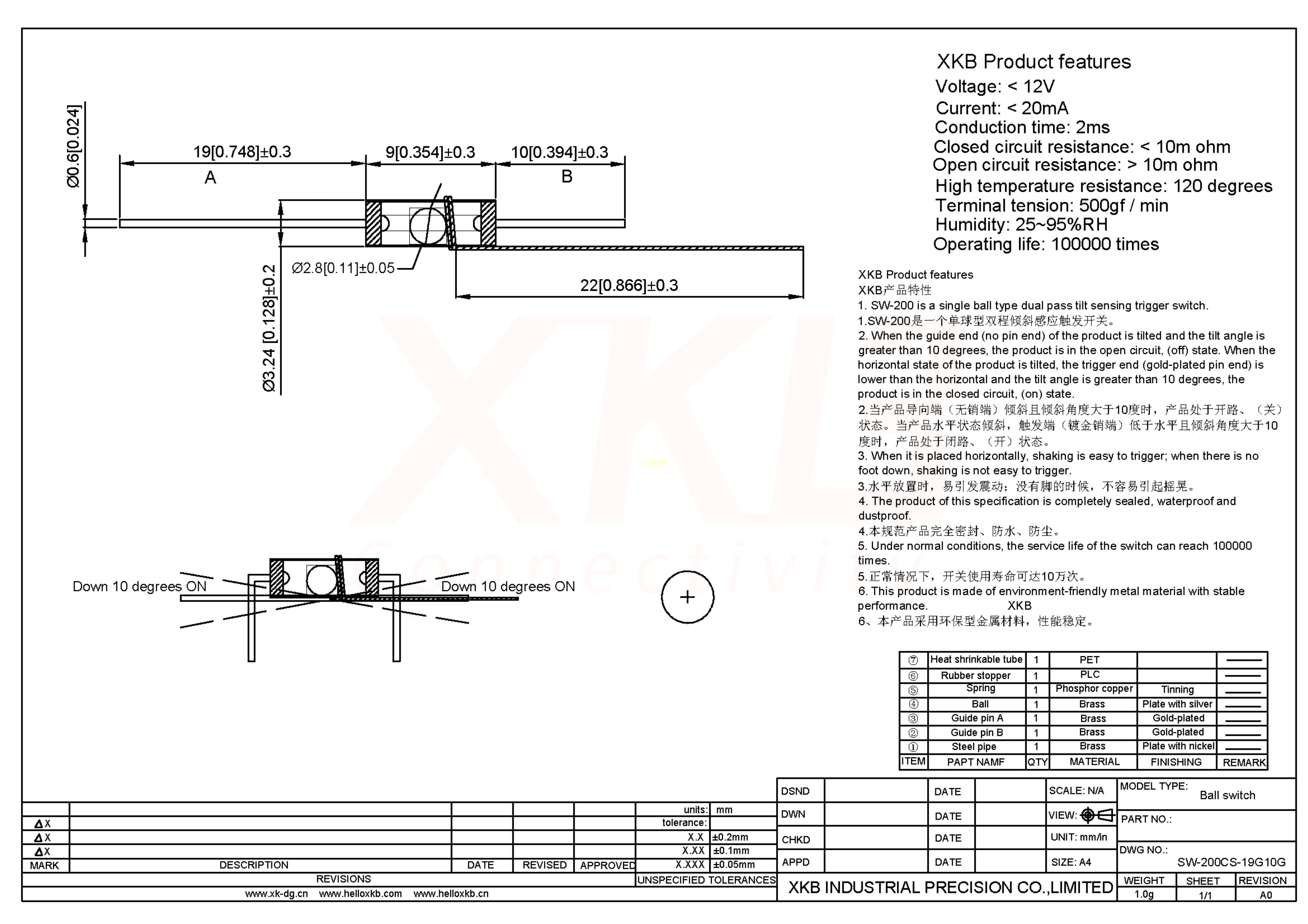 SW-200CS-19G10G数据手册插件封装XKBConnectivity(中国星坤)PDF规格书,中英文下载