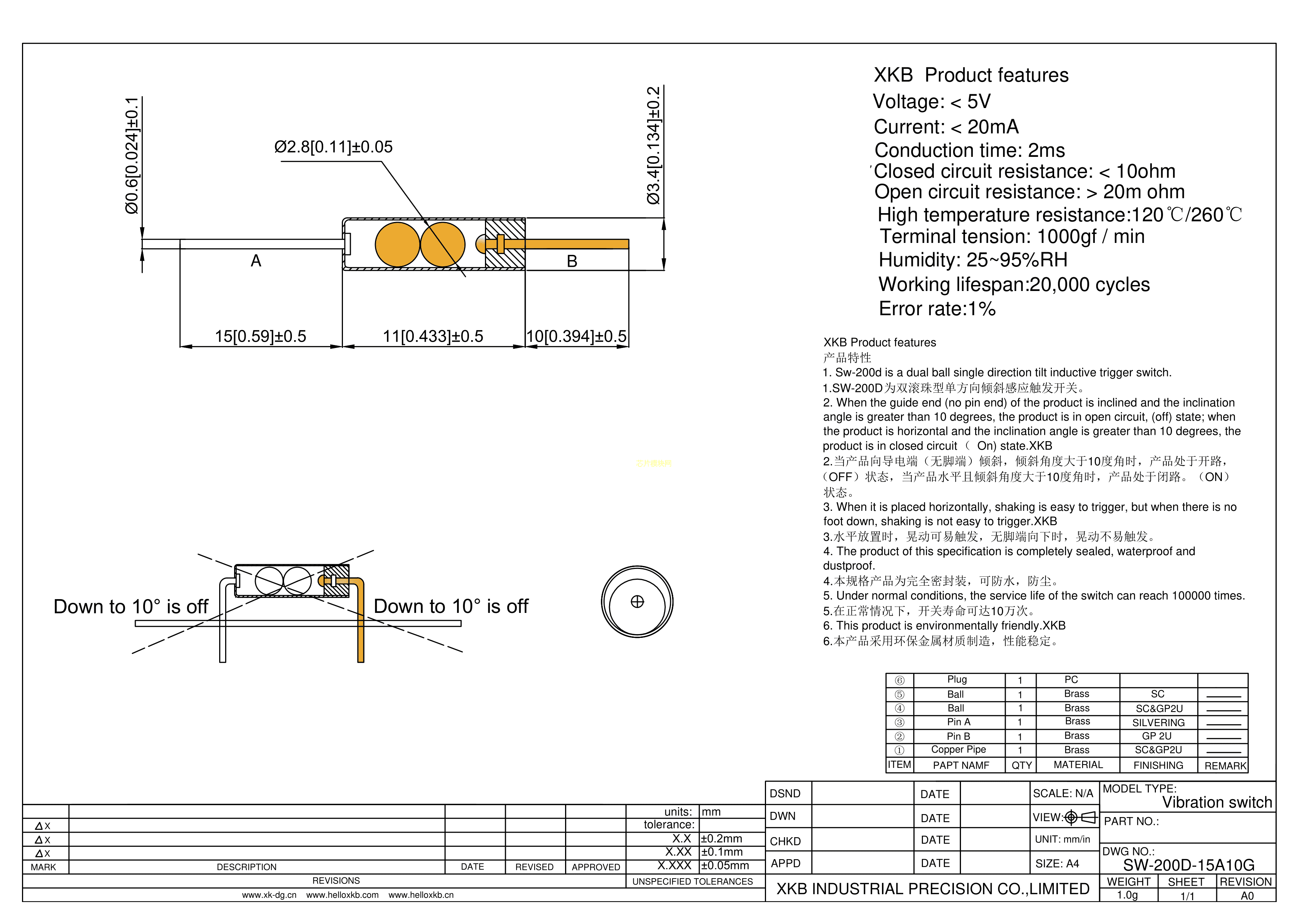SW-200D-15A10G数据手册-封装XKBConnectivity(中国星坤)PDF规格书,中英文下载