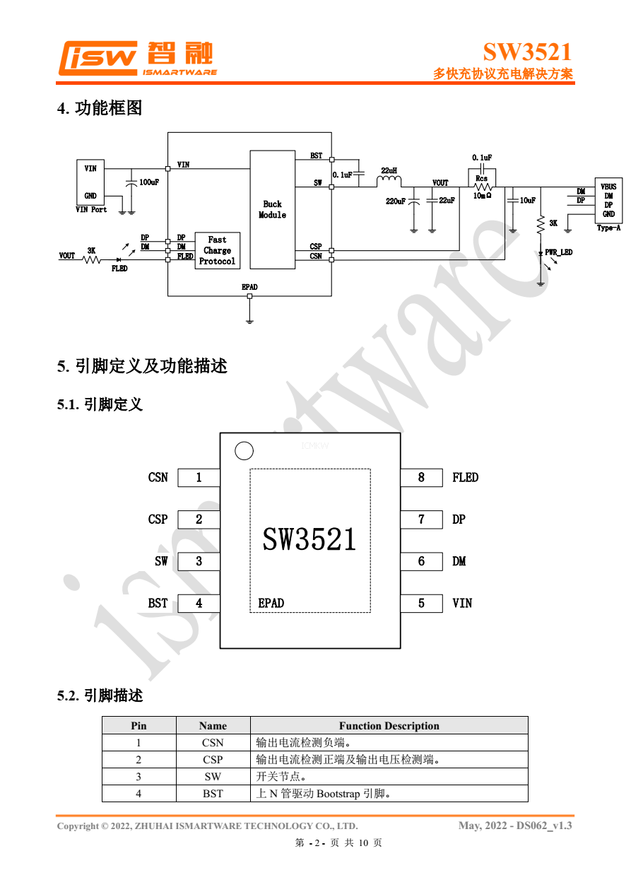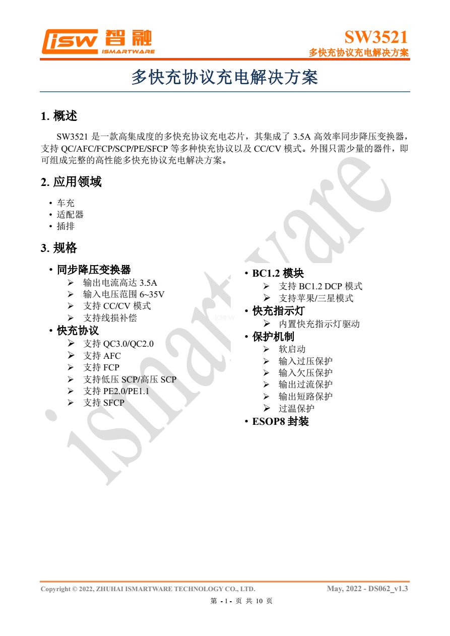 :SW3521 是一款高集成度的多快充协议充电芯片
