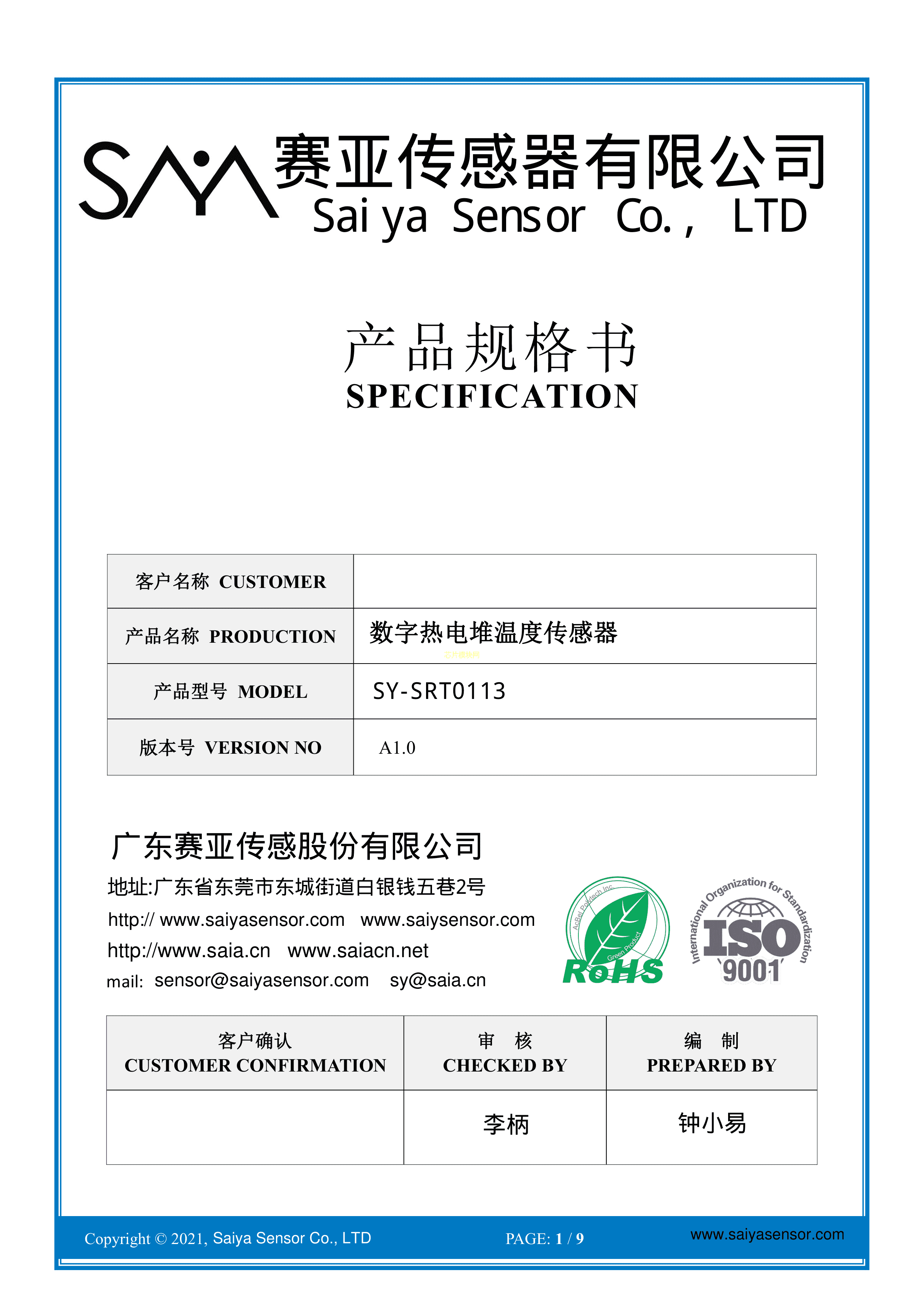 SY-SRT0113数据手册TO-39封装saiya(赛亚)PDF规格书,中英文下载