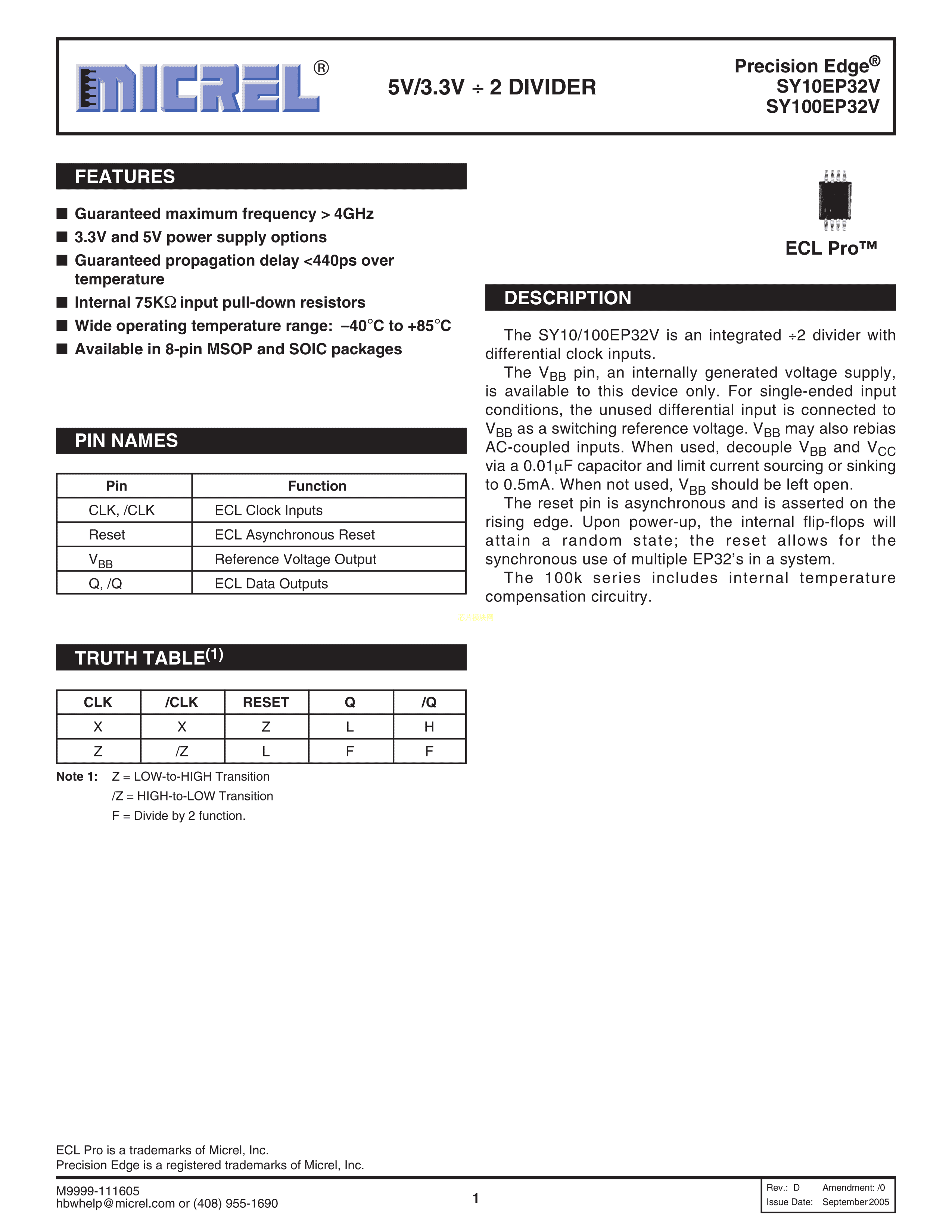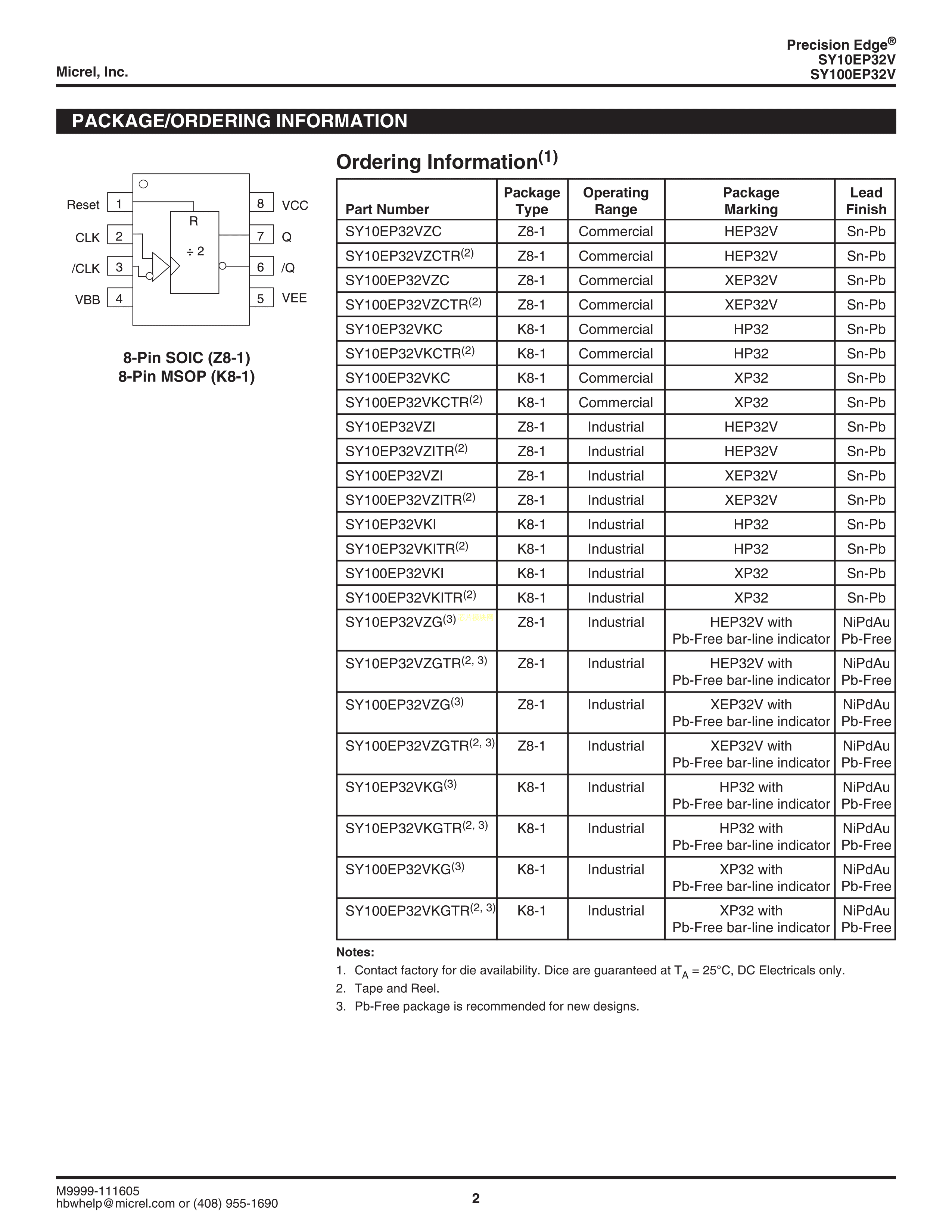 SY100EP32VZG数据手册SOIC-8_150mil封装MICROCHIP(美国微芯)PDF规