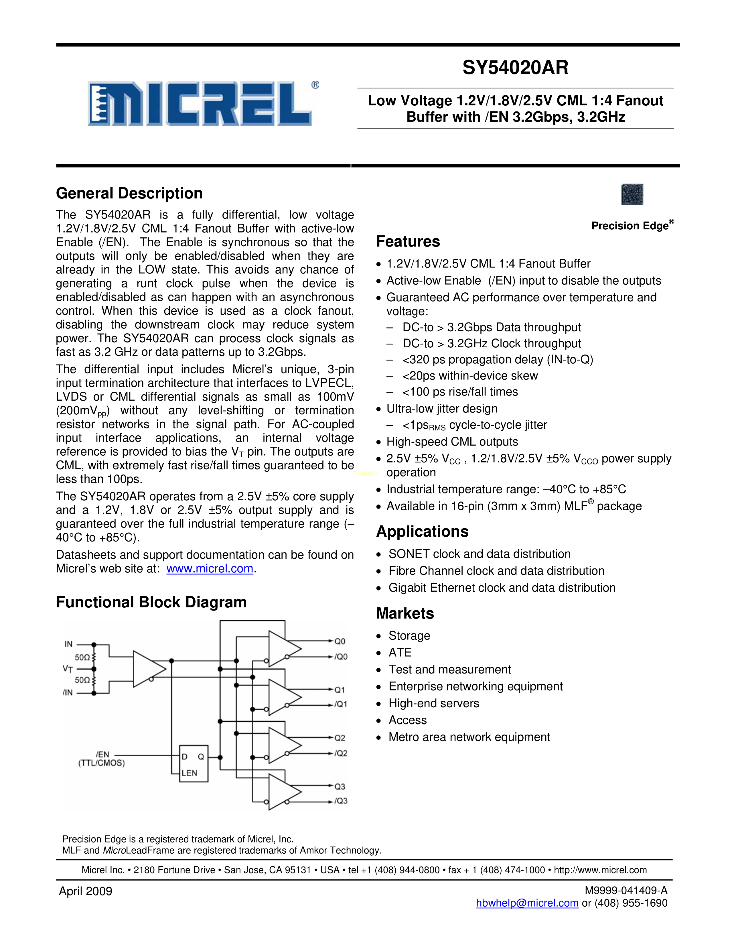 SY54020ARMG数据手册MLF-16封装MICROCHIP(美国微芯)PDF规格书,中英文下载