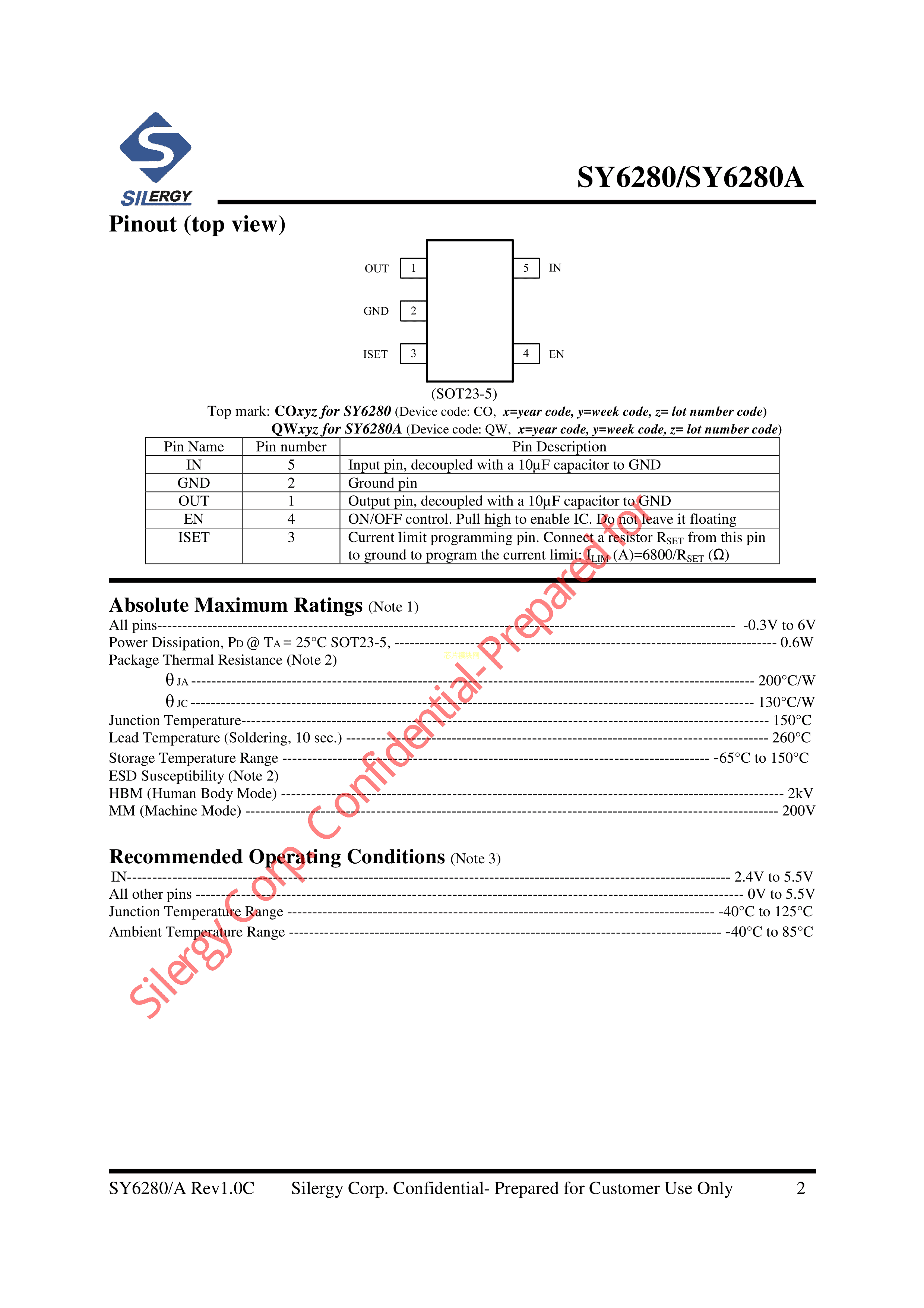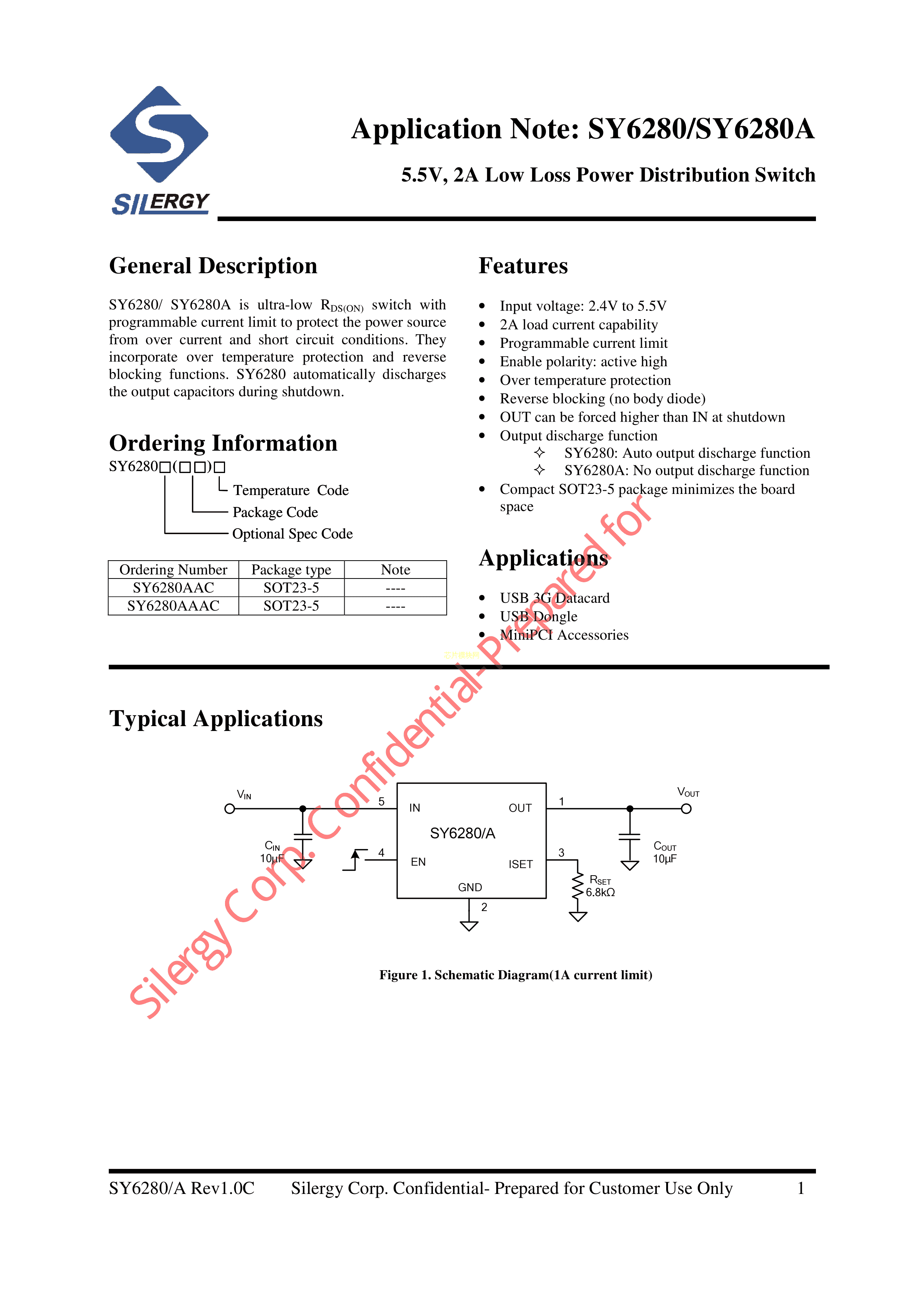 SY6280AAAC数据手册SOT-23-5封装silergy(矽力杰)PDF规格书,中英文下载