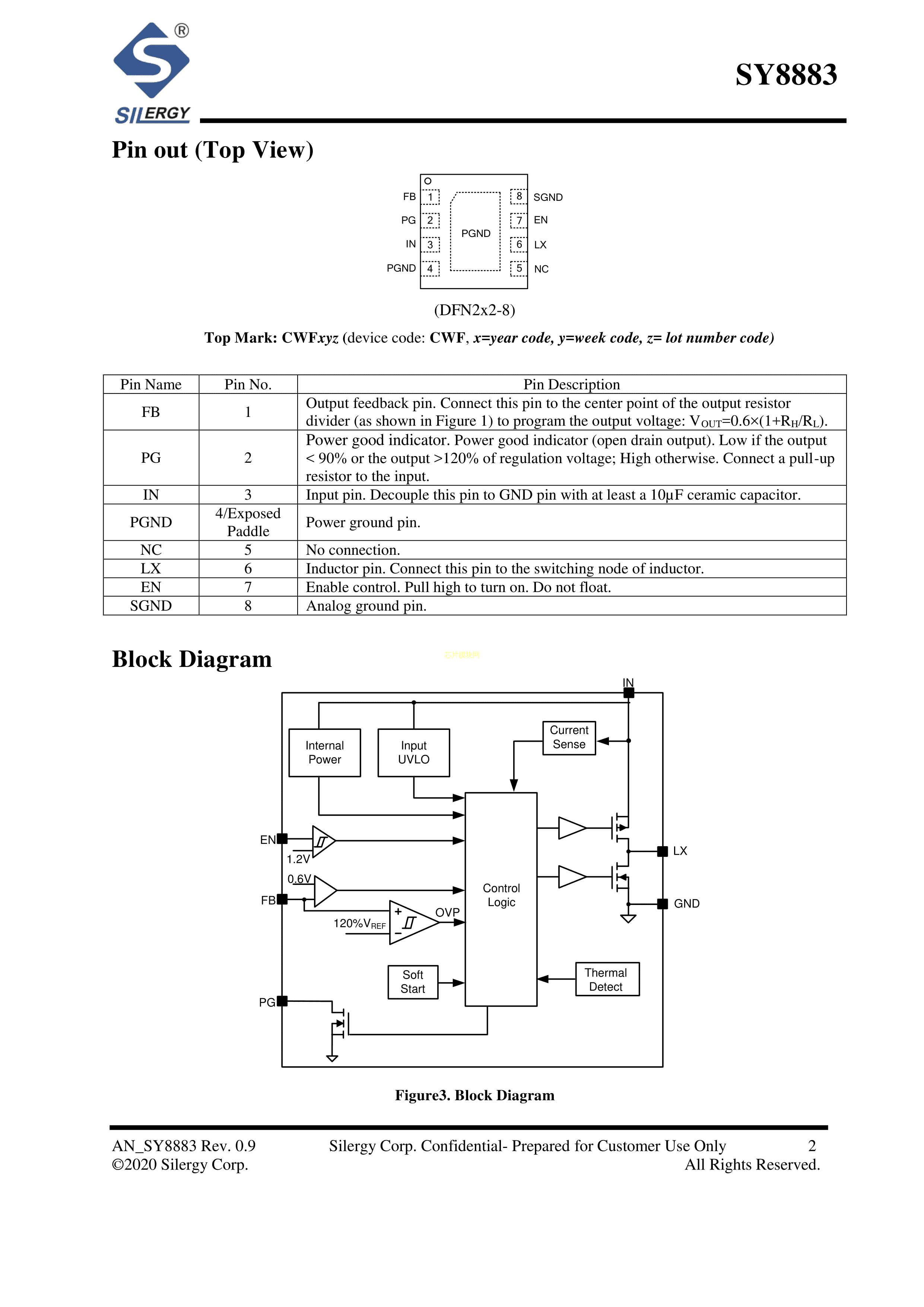 SY8883DFC数据手册DFN2x2-8封装silergy(矽力杰)PDF规格书,中英文下载