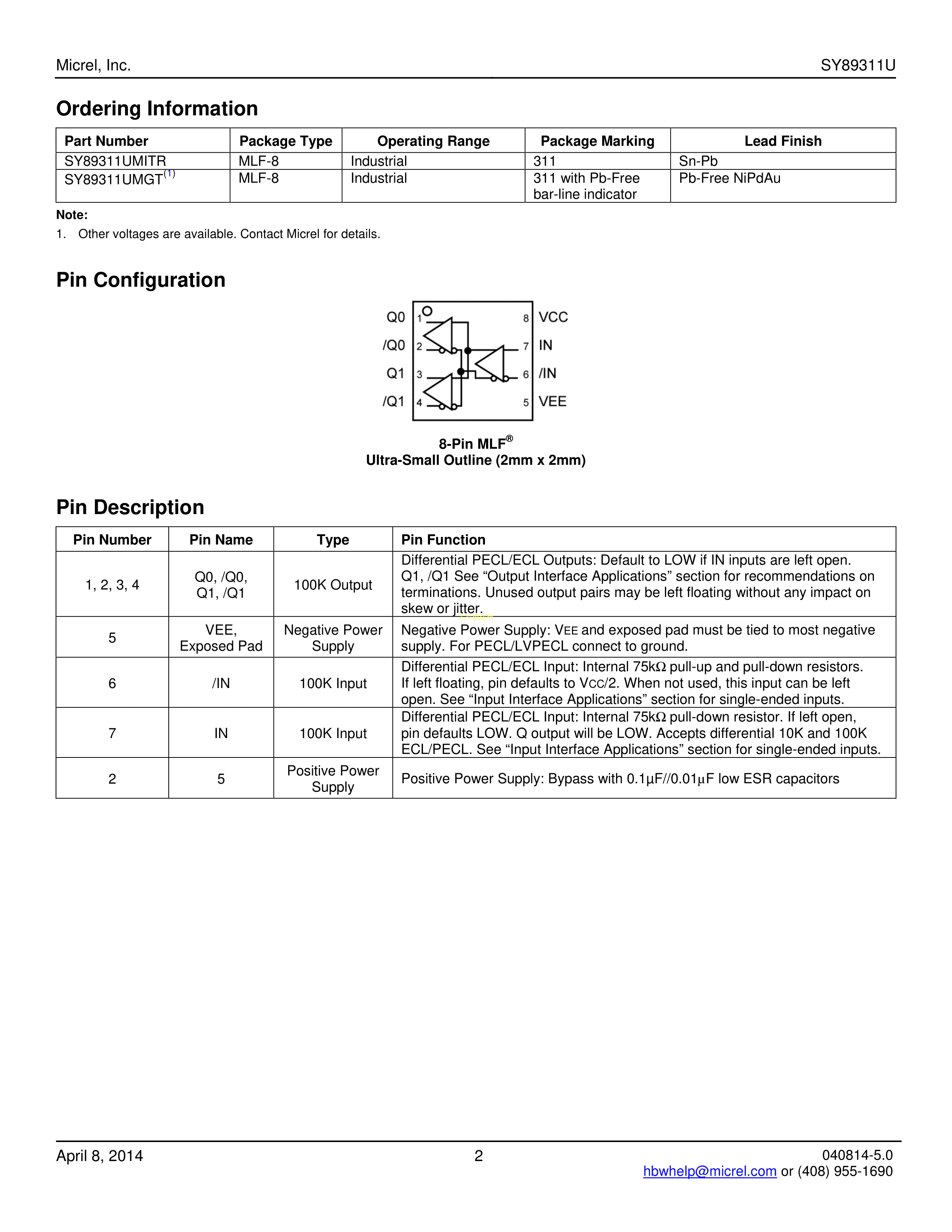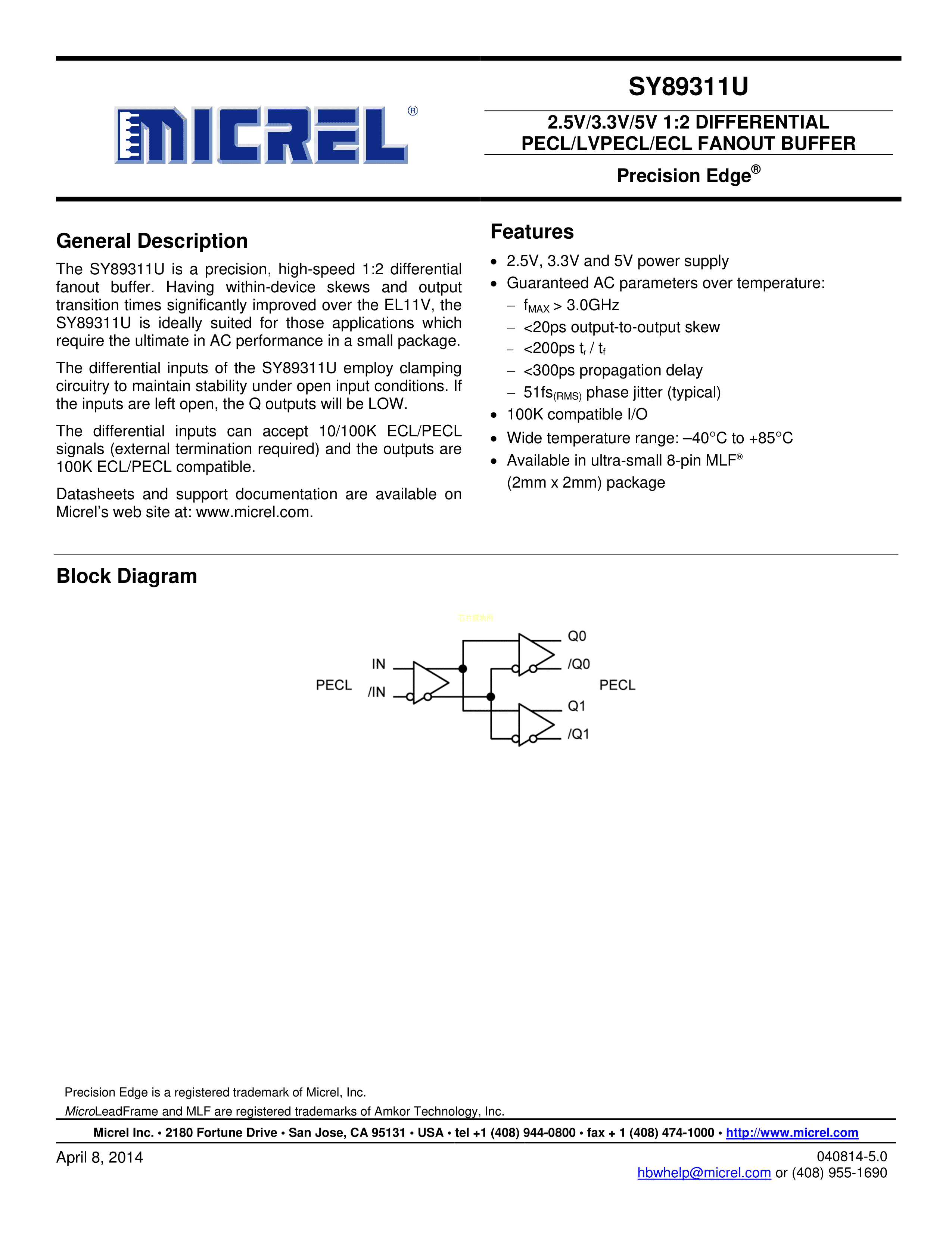 SY89311UMG-TR数据手册MLF-8封装MICROCHIP(美国微芯)PDF规格书,中英文下