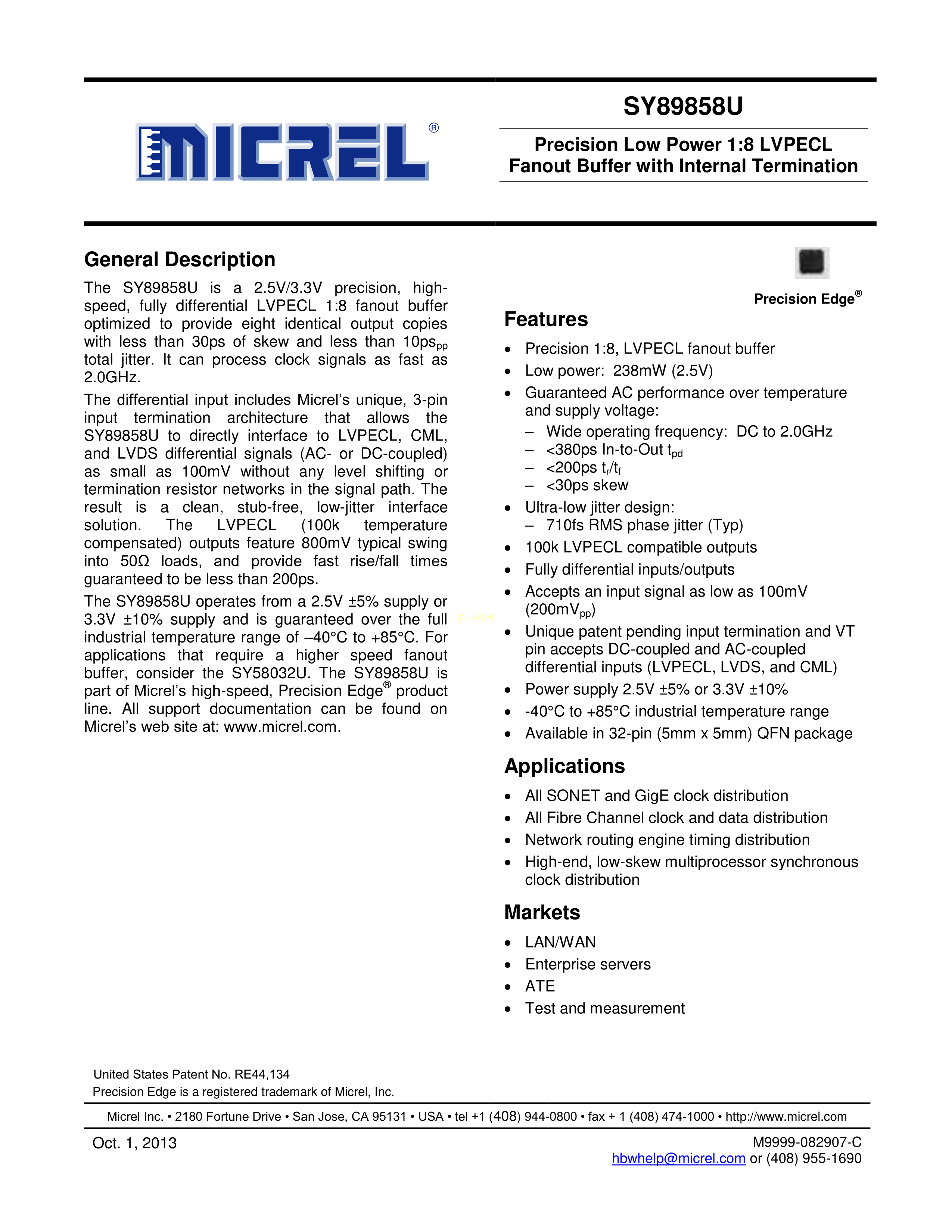 SY89858UMG数据手册QFN-32_5x5x05P封装MICROCHIP(美国微芯)PDF规格
