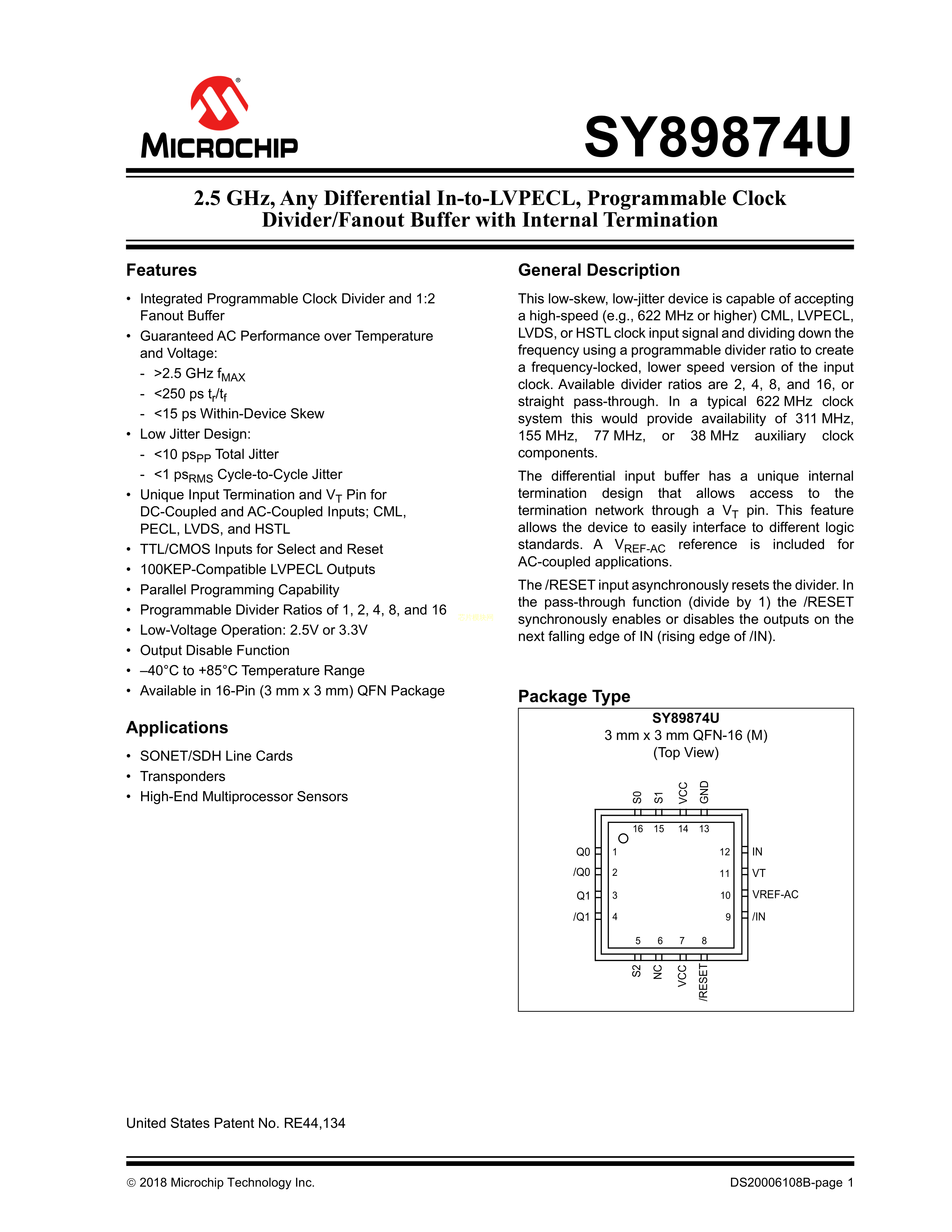 SY89874UMG数据手册QFN-16(3x3)封装MICROCHIP(美国微芯)PDF规格书,中