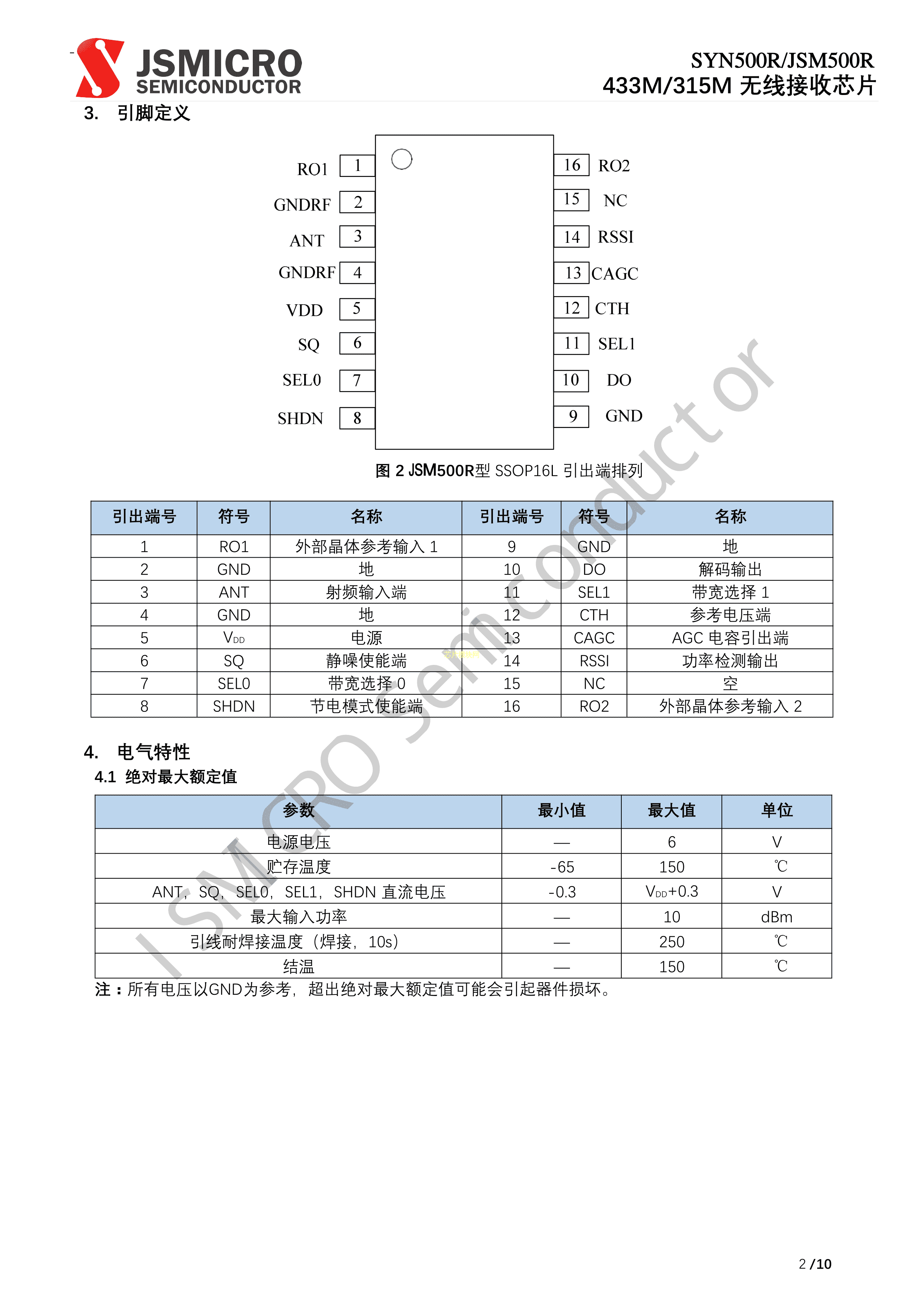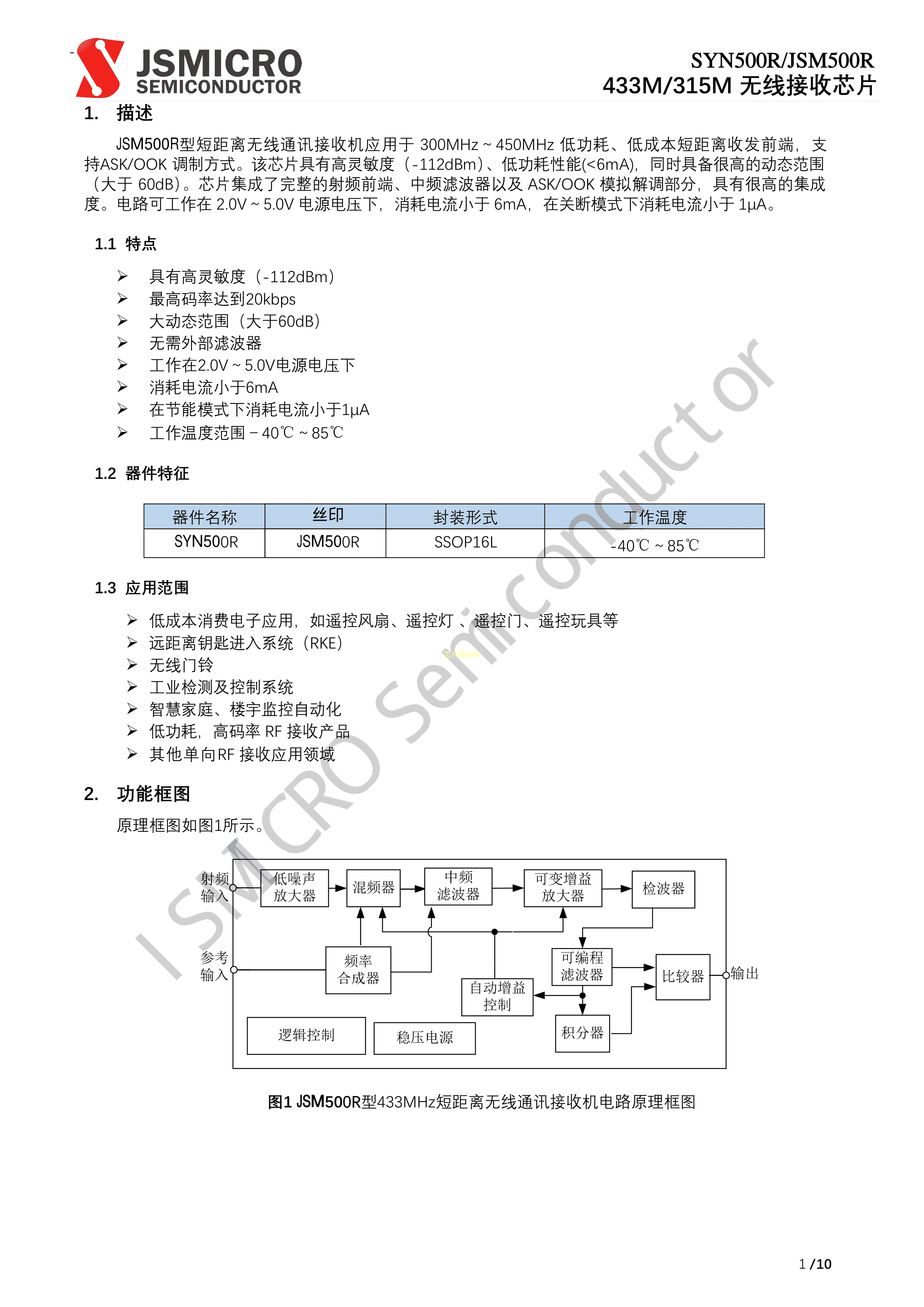 SYN500R数据手册SSOP-16封装JSMSEMI(杰盛微)PDF规格书,中英文下载