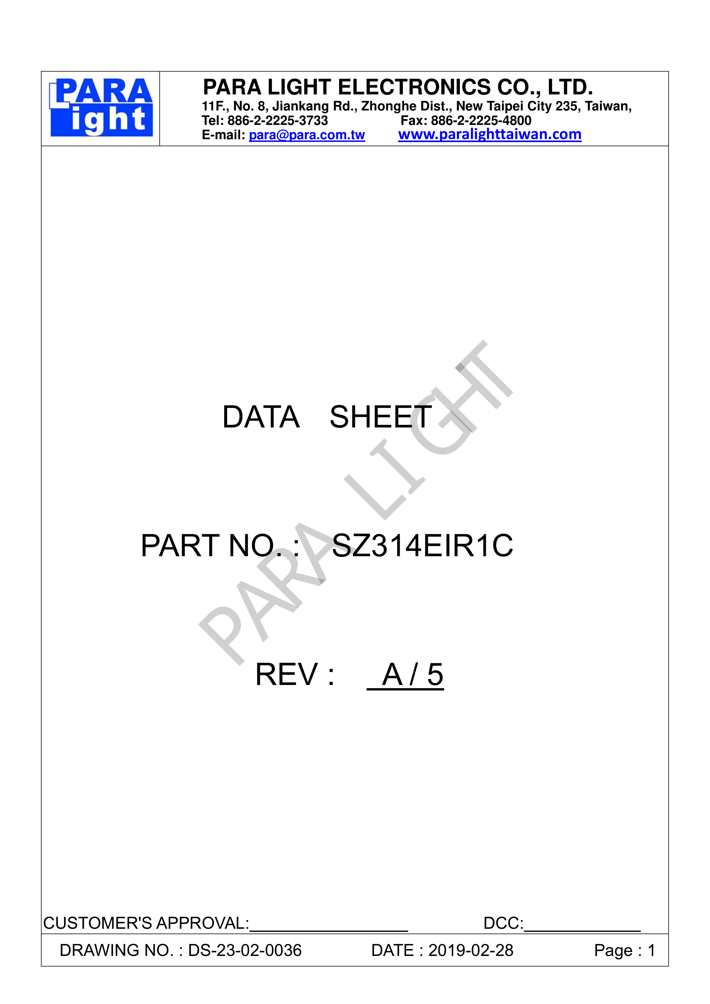 SZ314EIR1C数据手册插件φ=2.84mm封装PARALIGHT(台湾光鼎)PDF规格书,中英