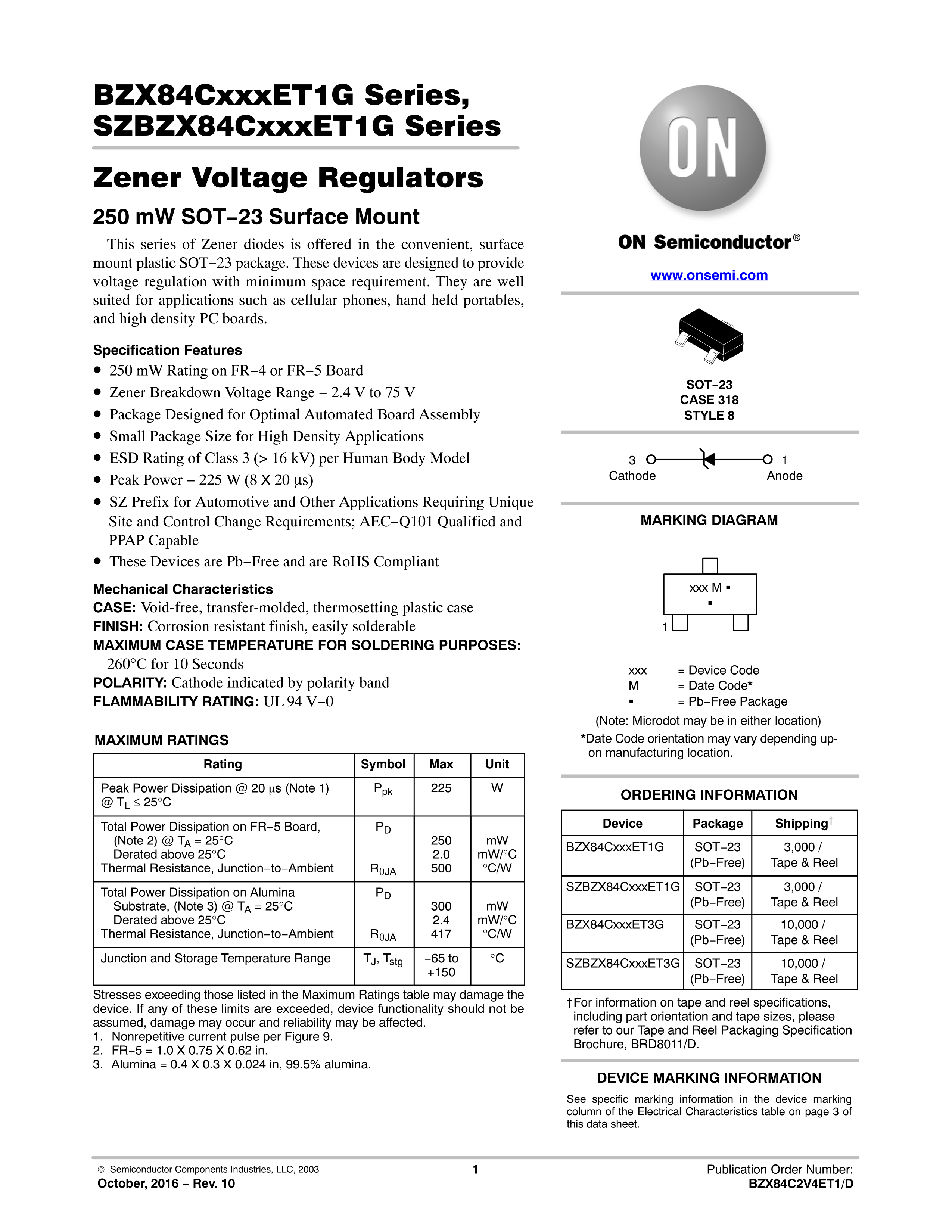 SZBZX84C13ET1G数据手册SOT-23封装onsemi(安森美)PDF规格书,中英文下载