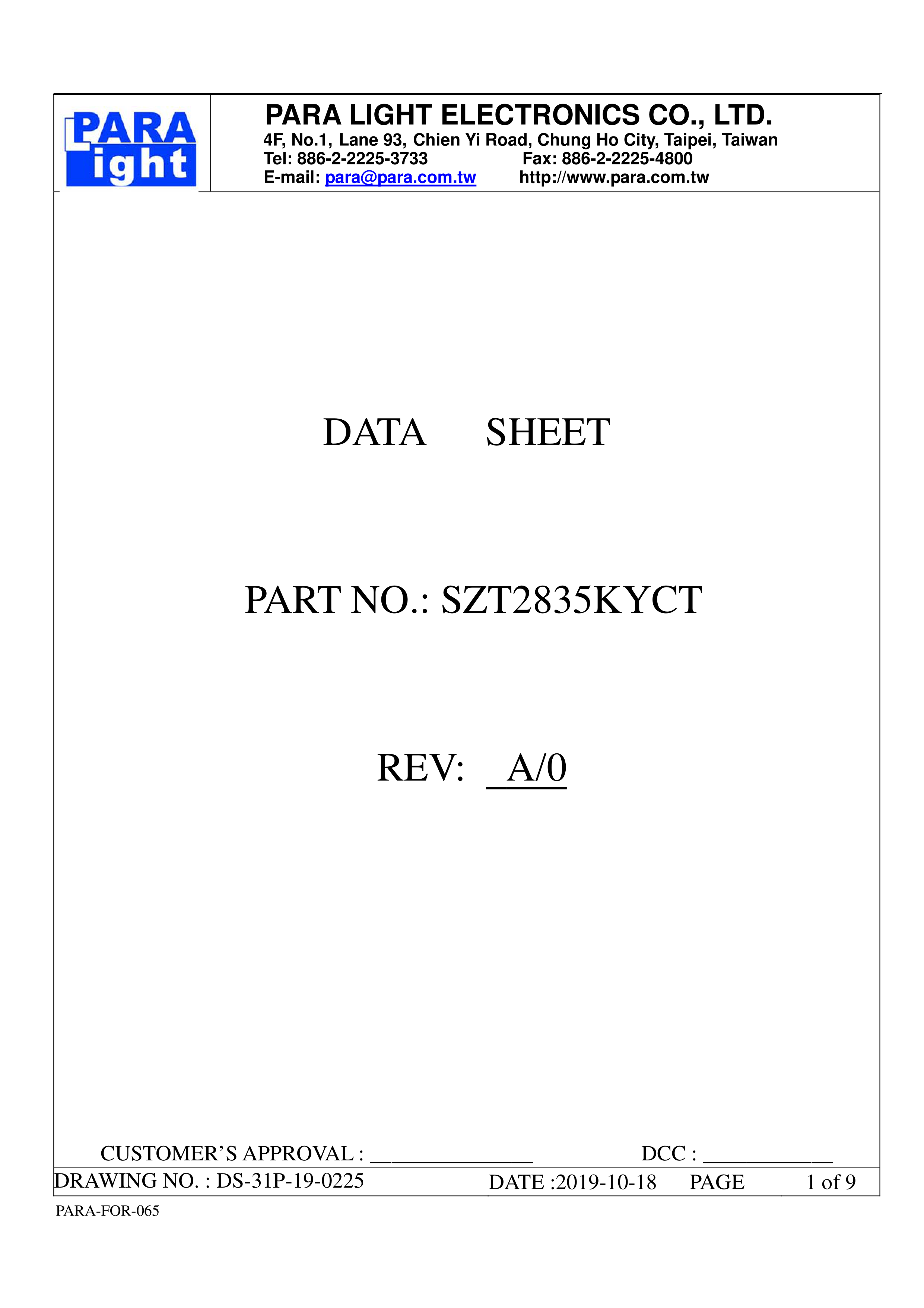 SZT2835KYCT数据手册SMD3.5x2.8x0.75mm封装PARALIGHT(台湾光鼎)P