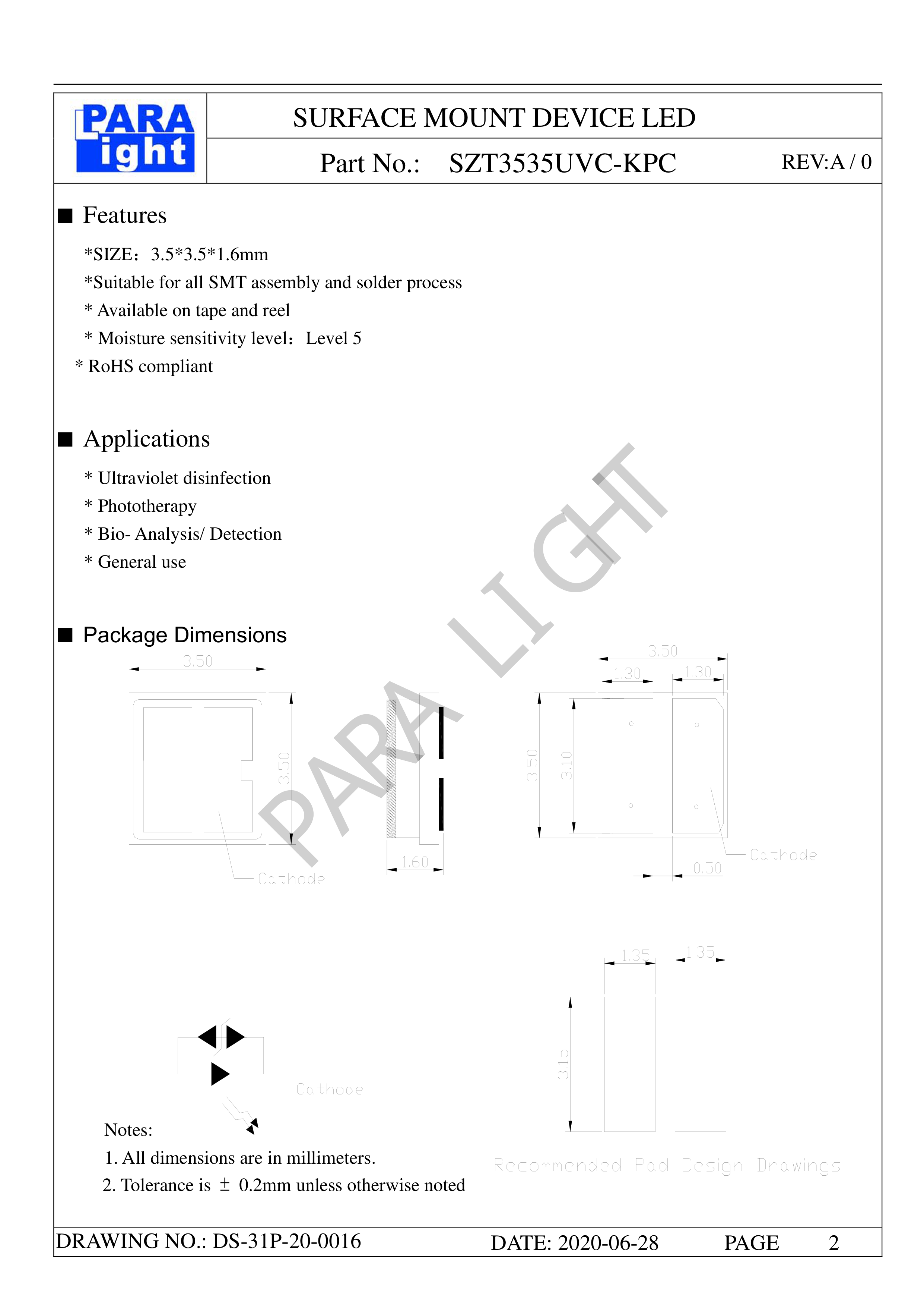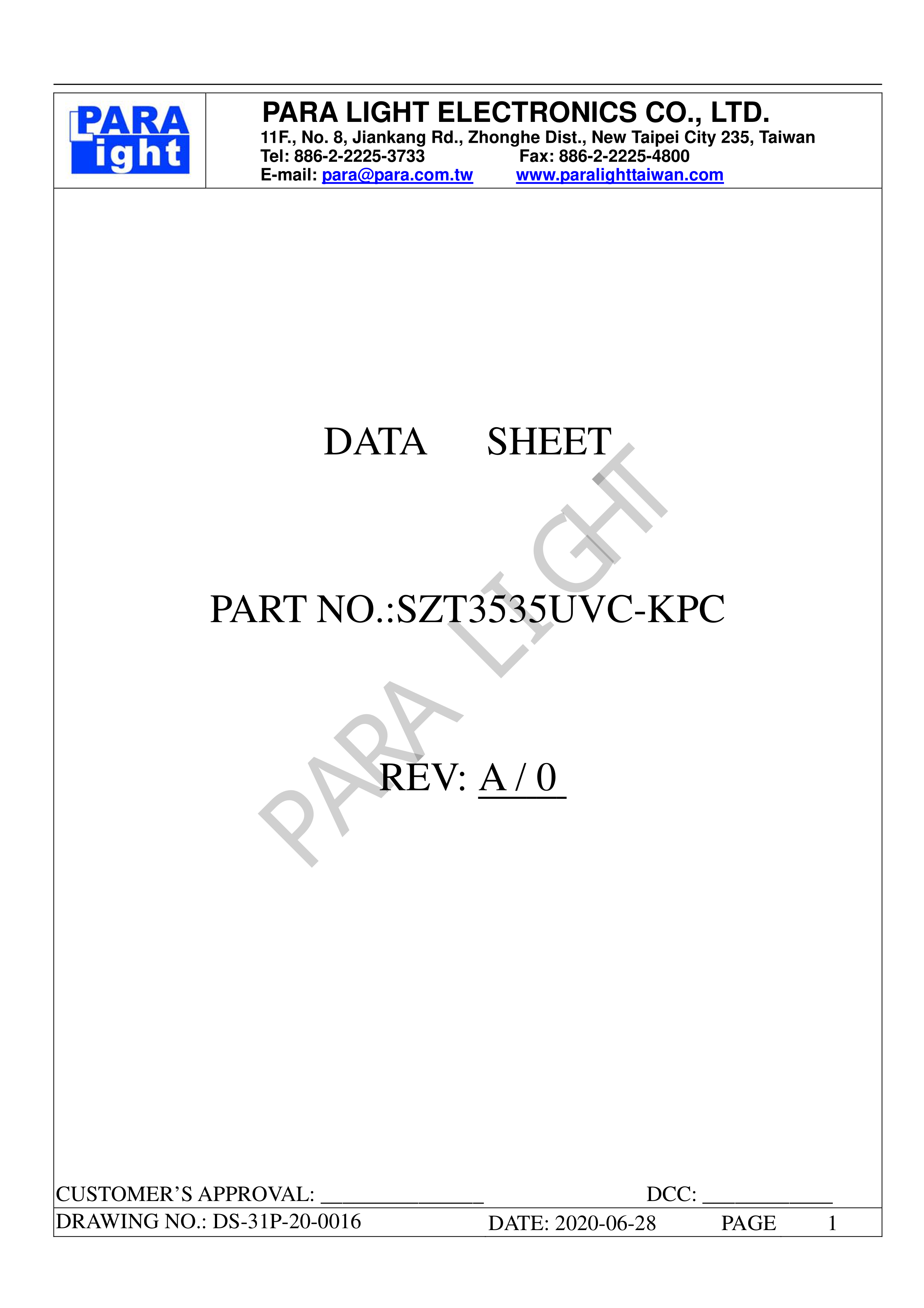 SZT3535UVC-KPC数据手册SMD3.5x3.5x1.6mm封装PARALIGHT(台湾光鼎