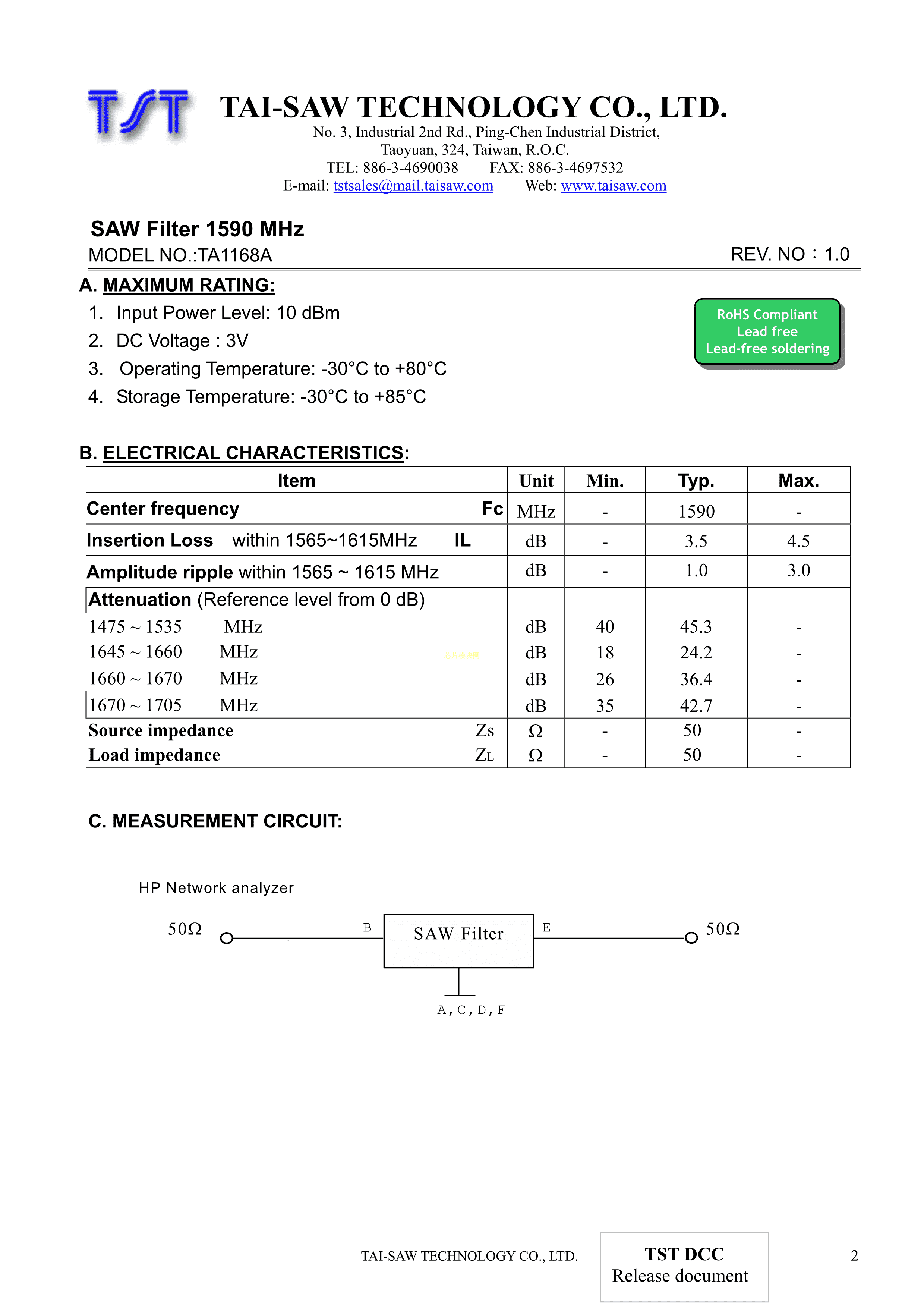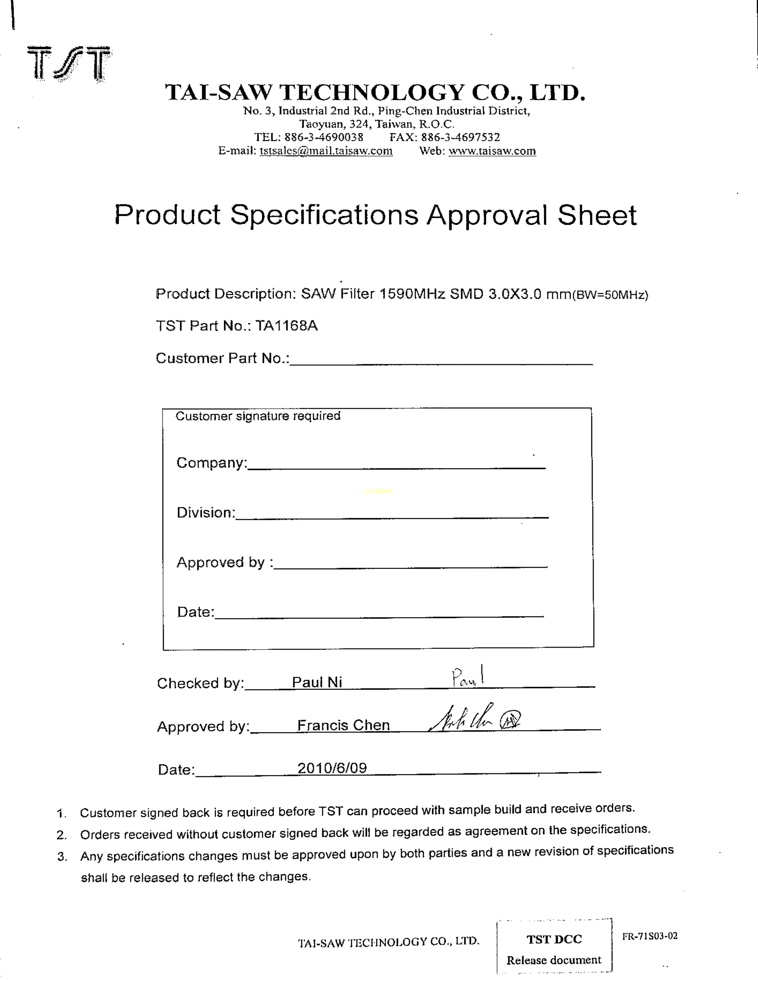 TA1168A数据手册SMD3x3x1.4mm封装TST(台湾嘉硕)PDF规格书,中英文下载