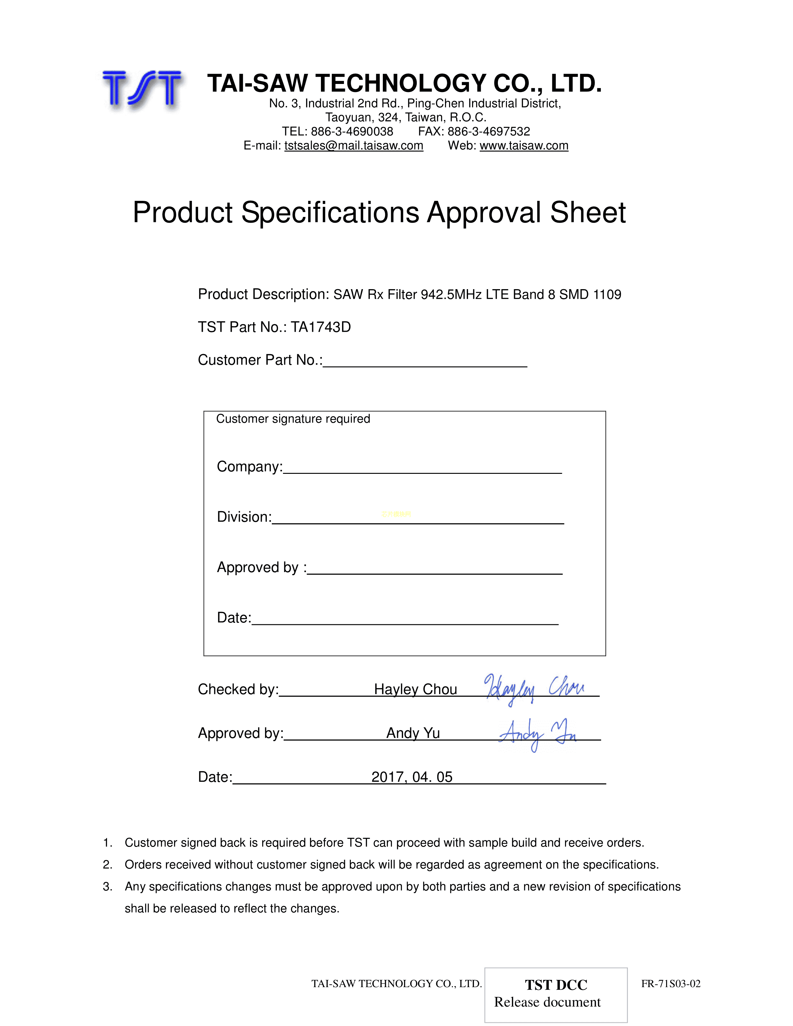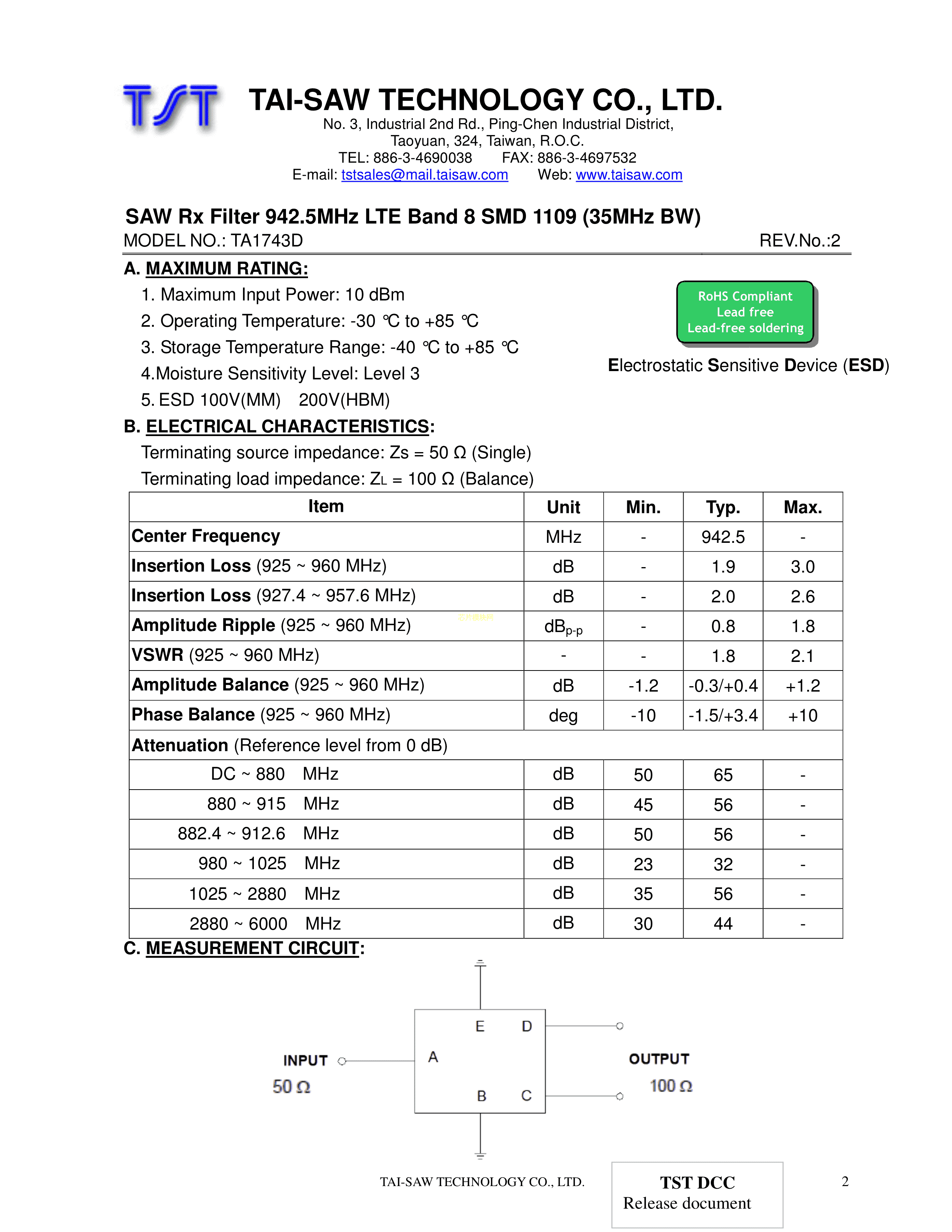 TA1743D数据手册SMD封装TST(台湾嘉硕)PDF规格书,中英文下载