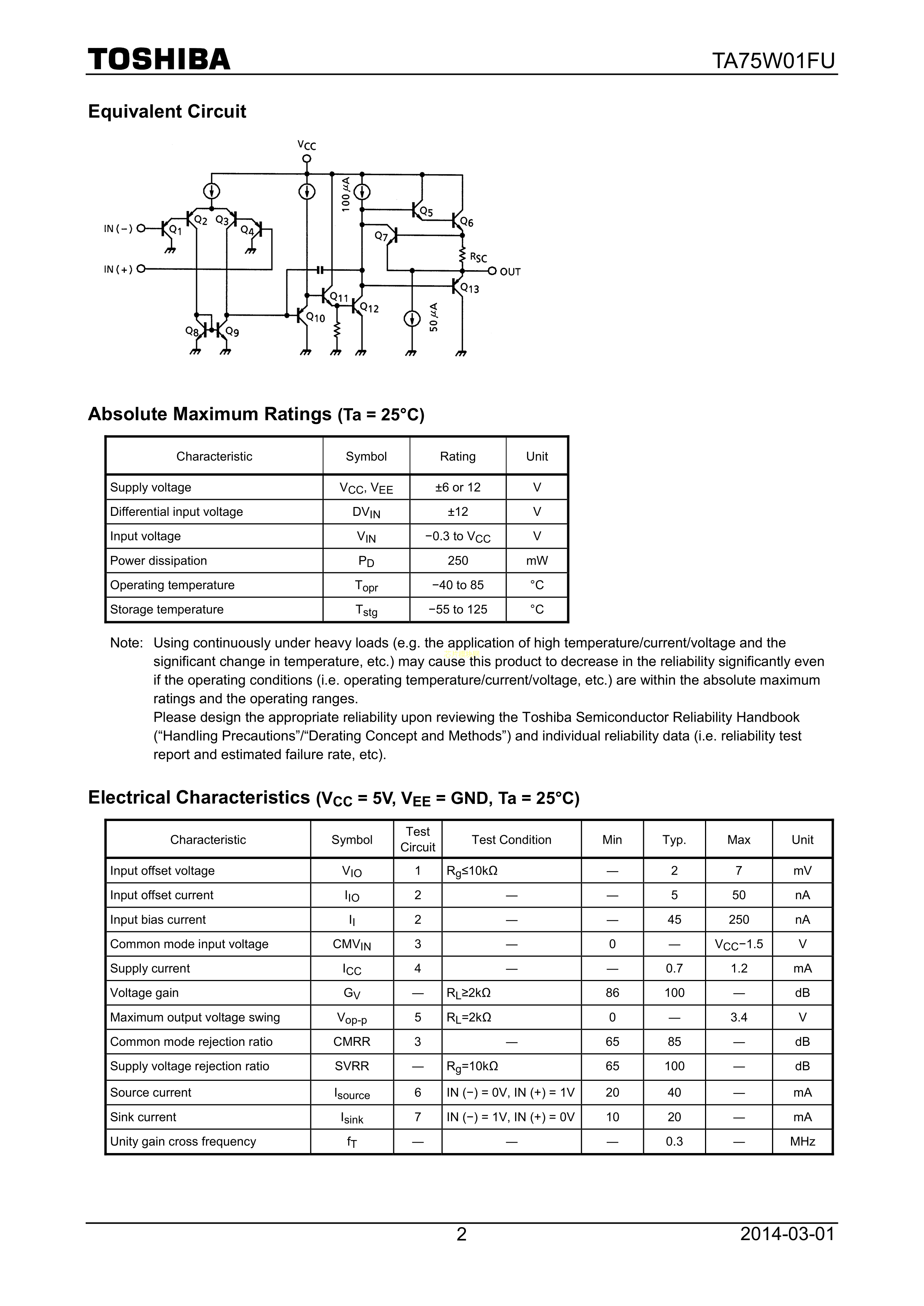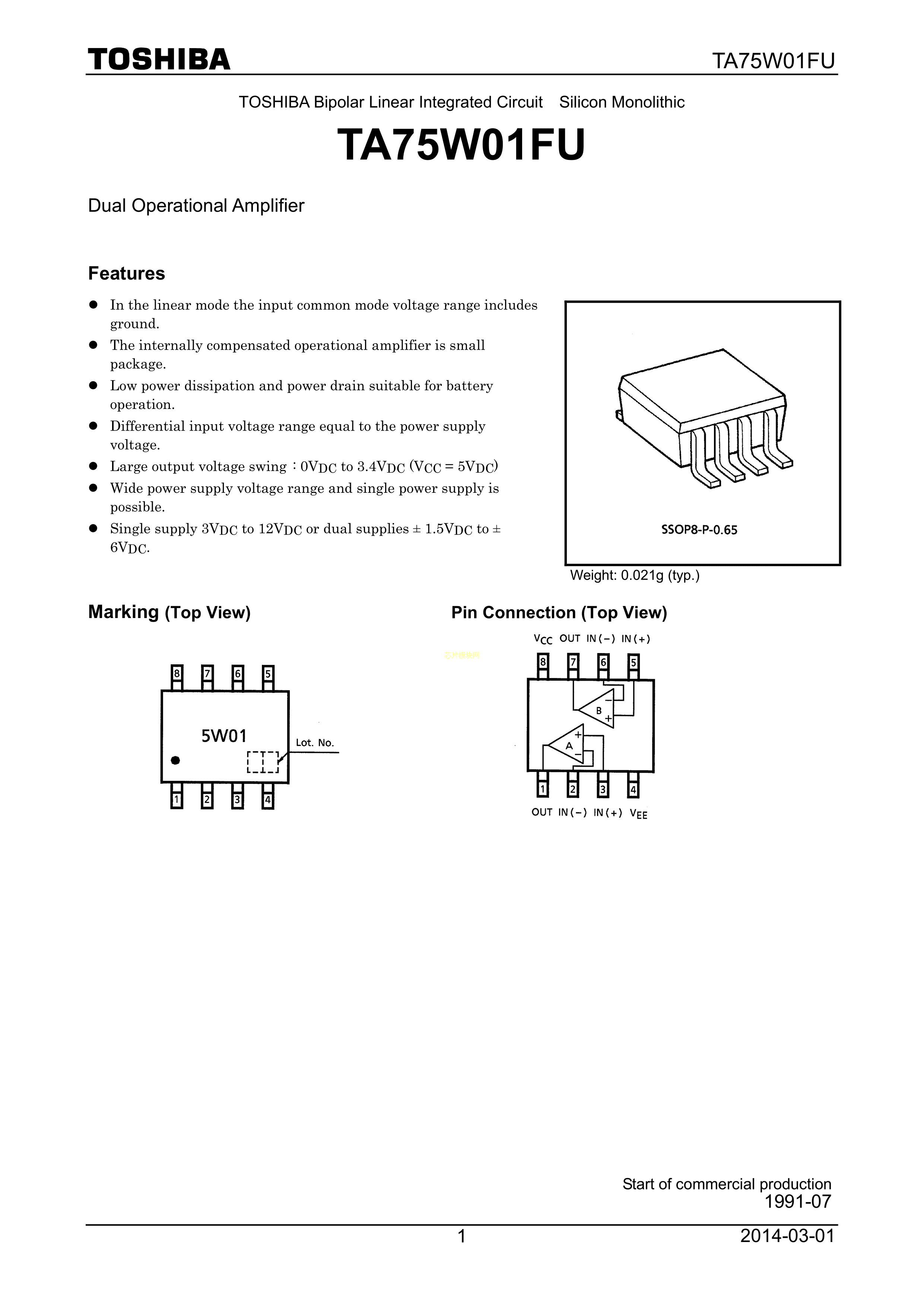 TA75W01FULF数据手册SM8封装TOSHIBA(东芝)PDF规格书,中英文下载