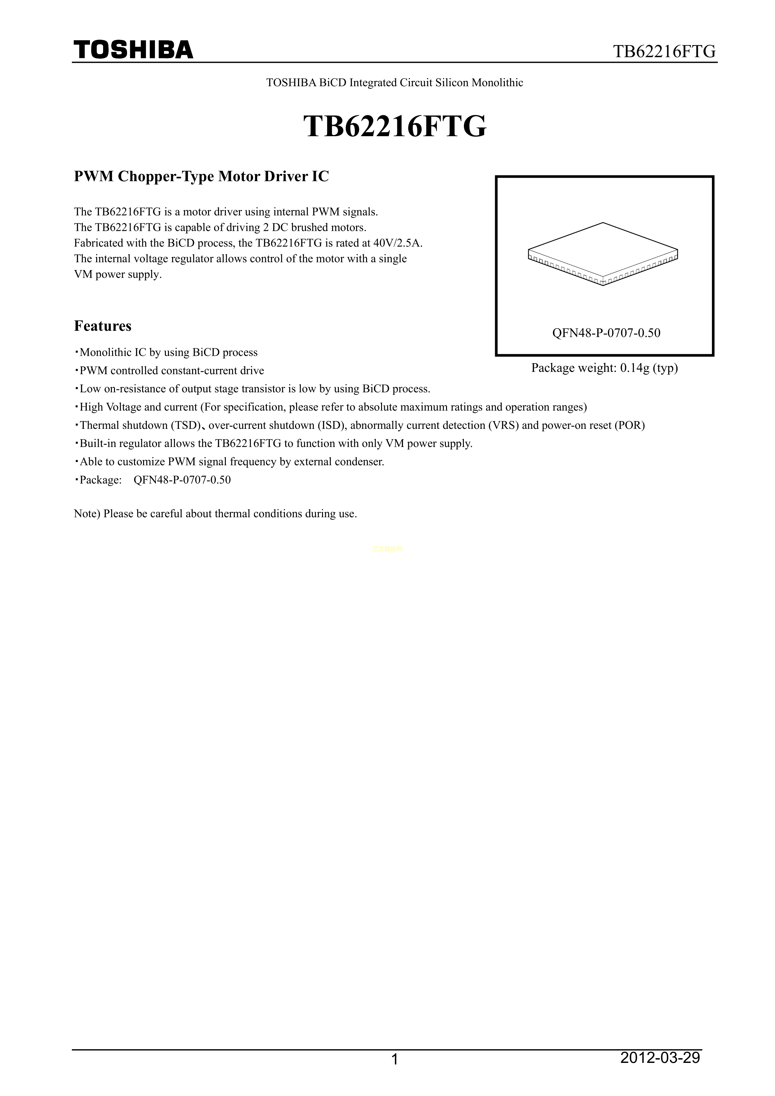 TB62216FTGC8EL数据手册QFN-48_7x7x05P封装TOSHIBA(东芝)PDF规格