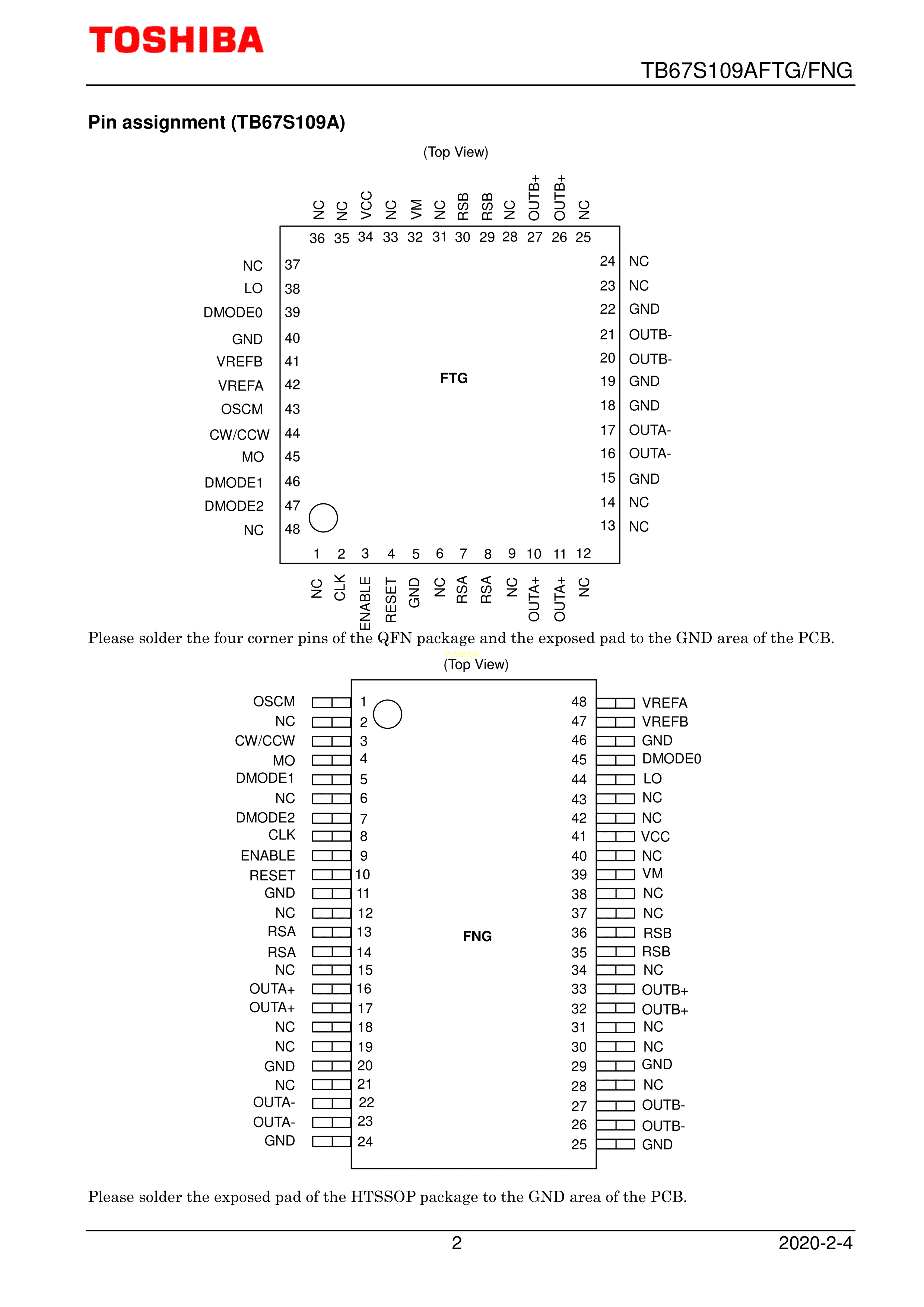 TB67S109AFTGEL数据手册WQFN-48(7x7)封装TOSHIBA(东芝)PDF规格书,