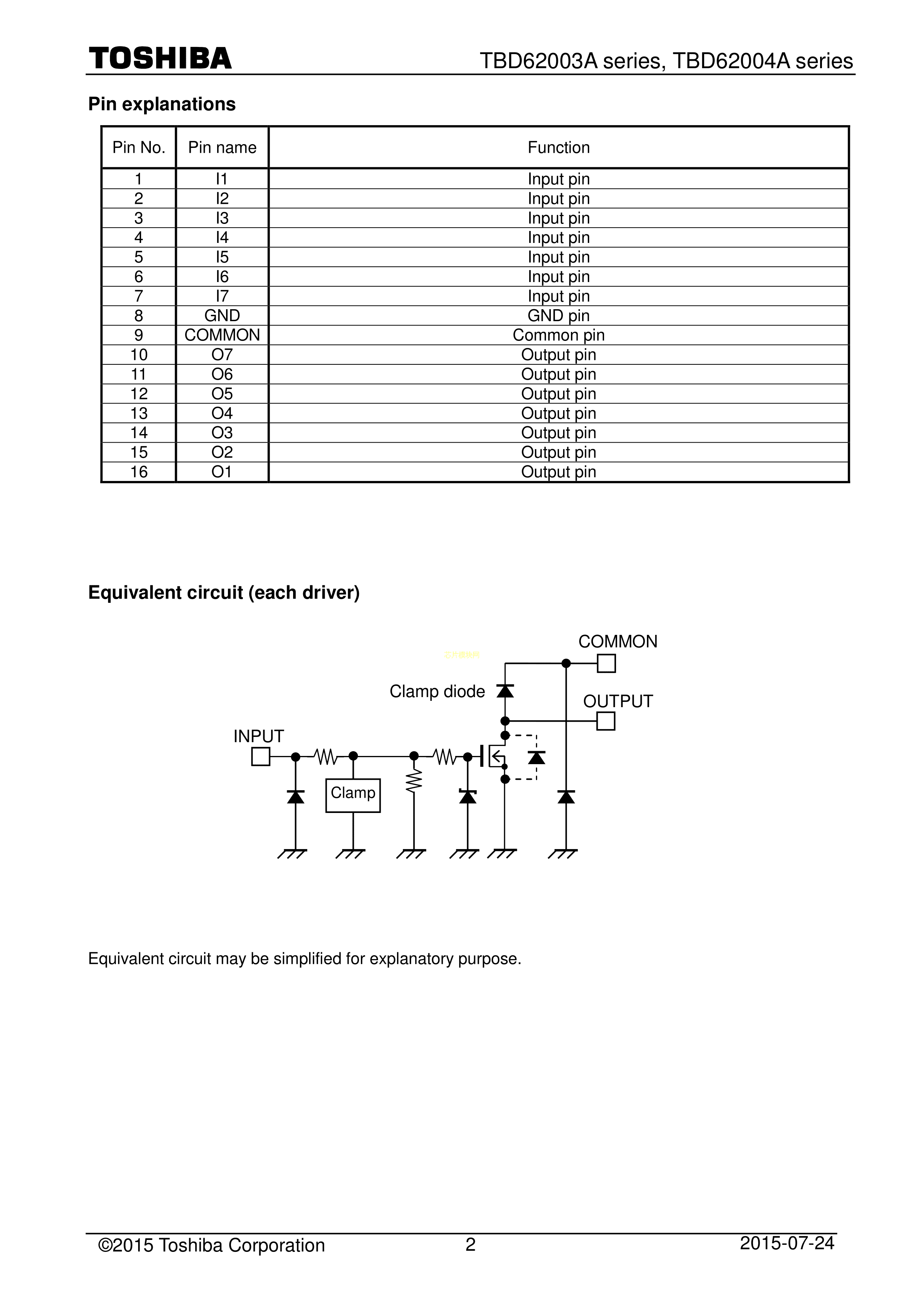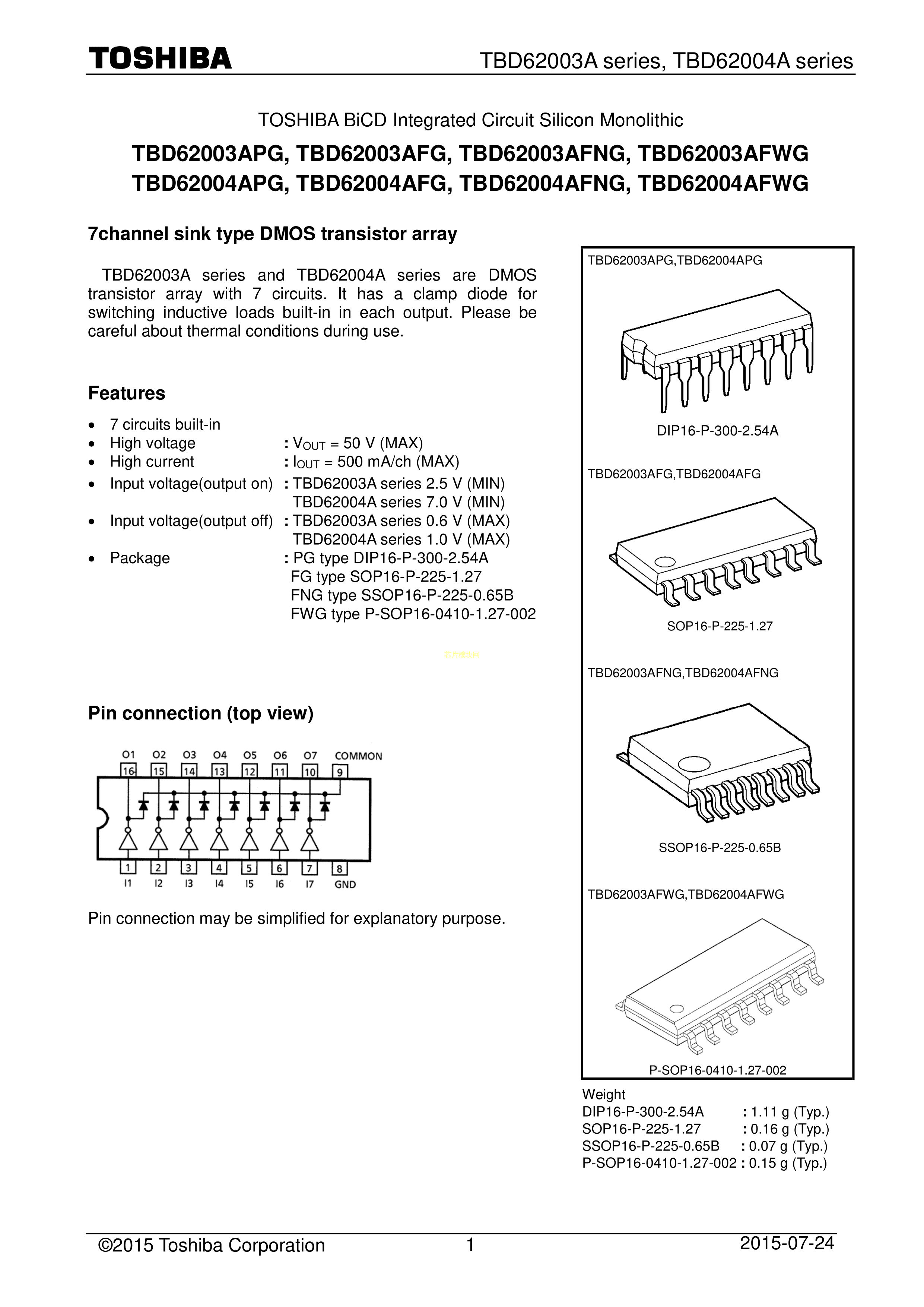 TBD62003AFG(ZEL)数据手册SOIC-16封装TOSHIBA(东芝)PDF规格书,中英文